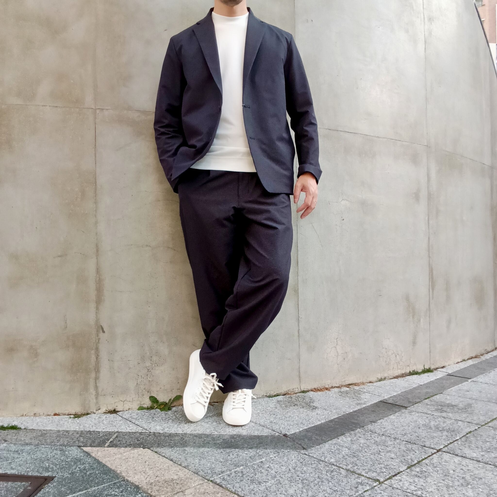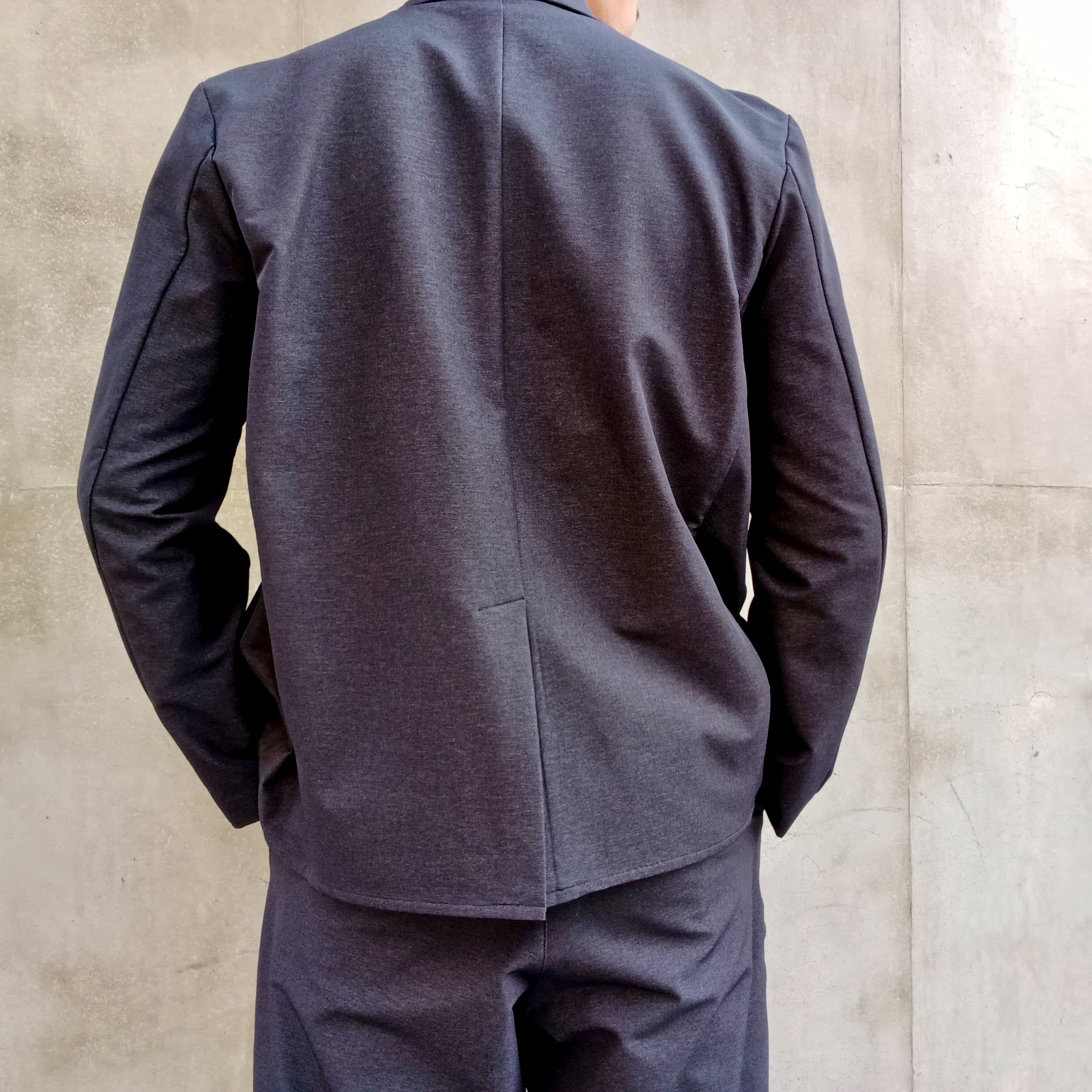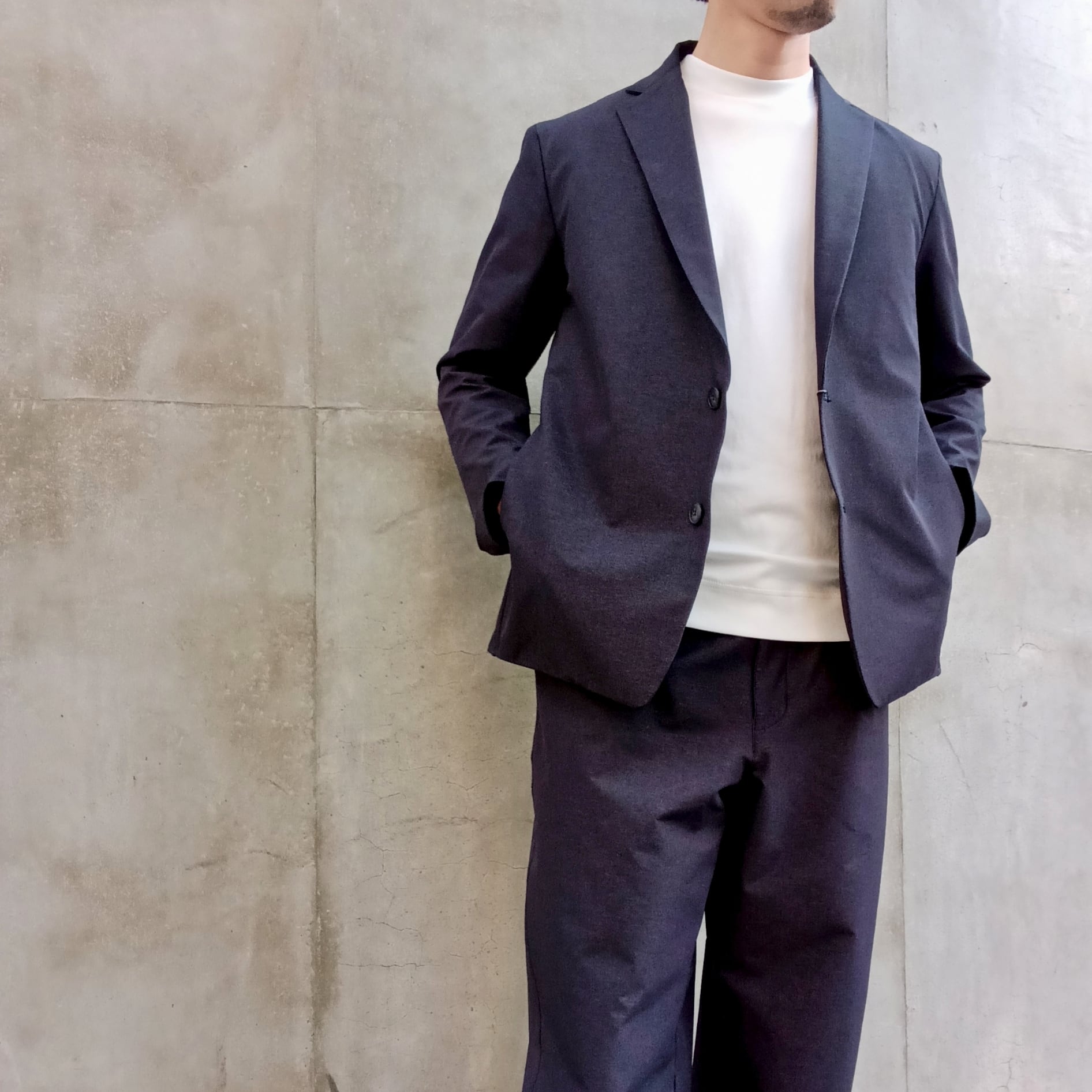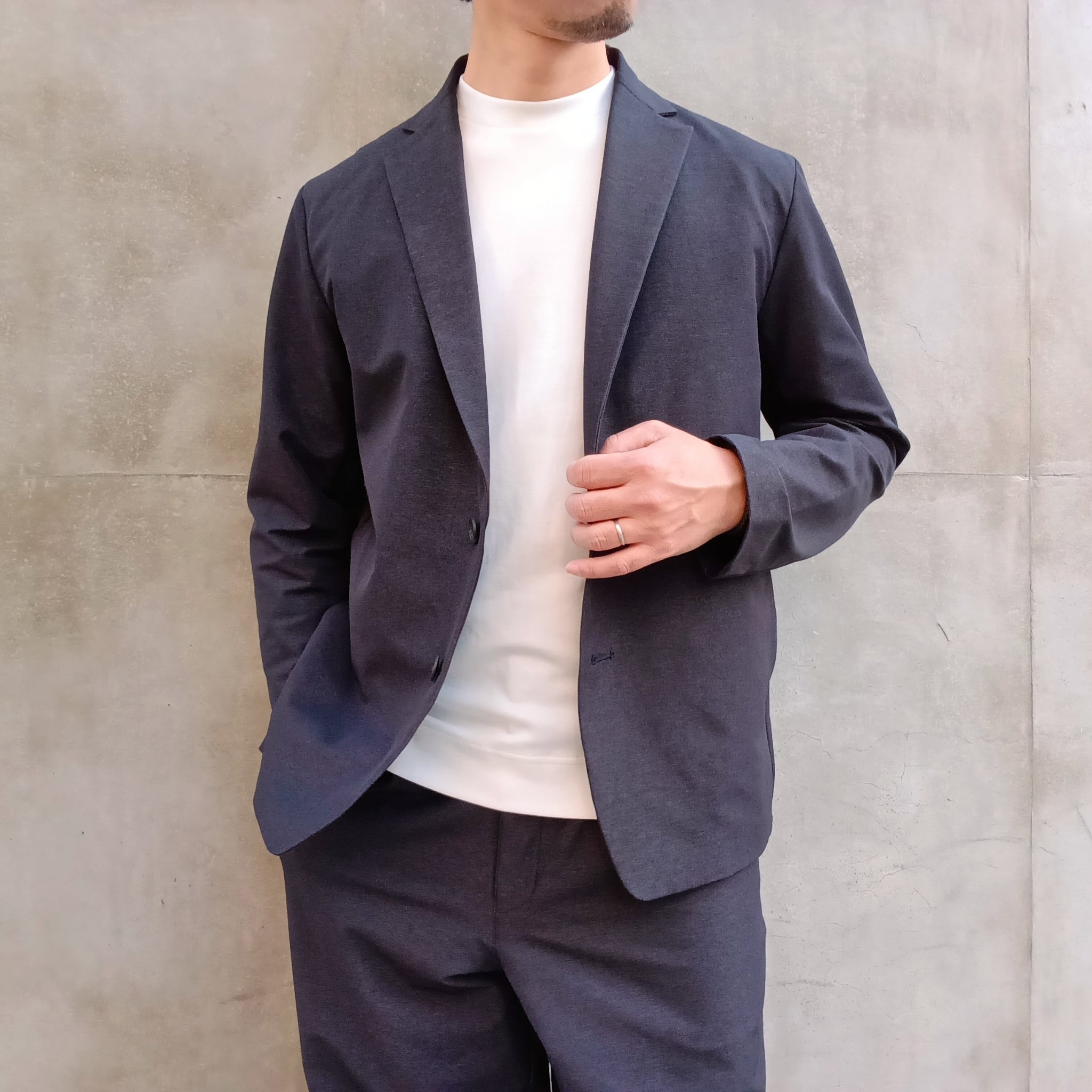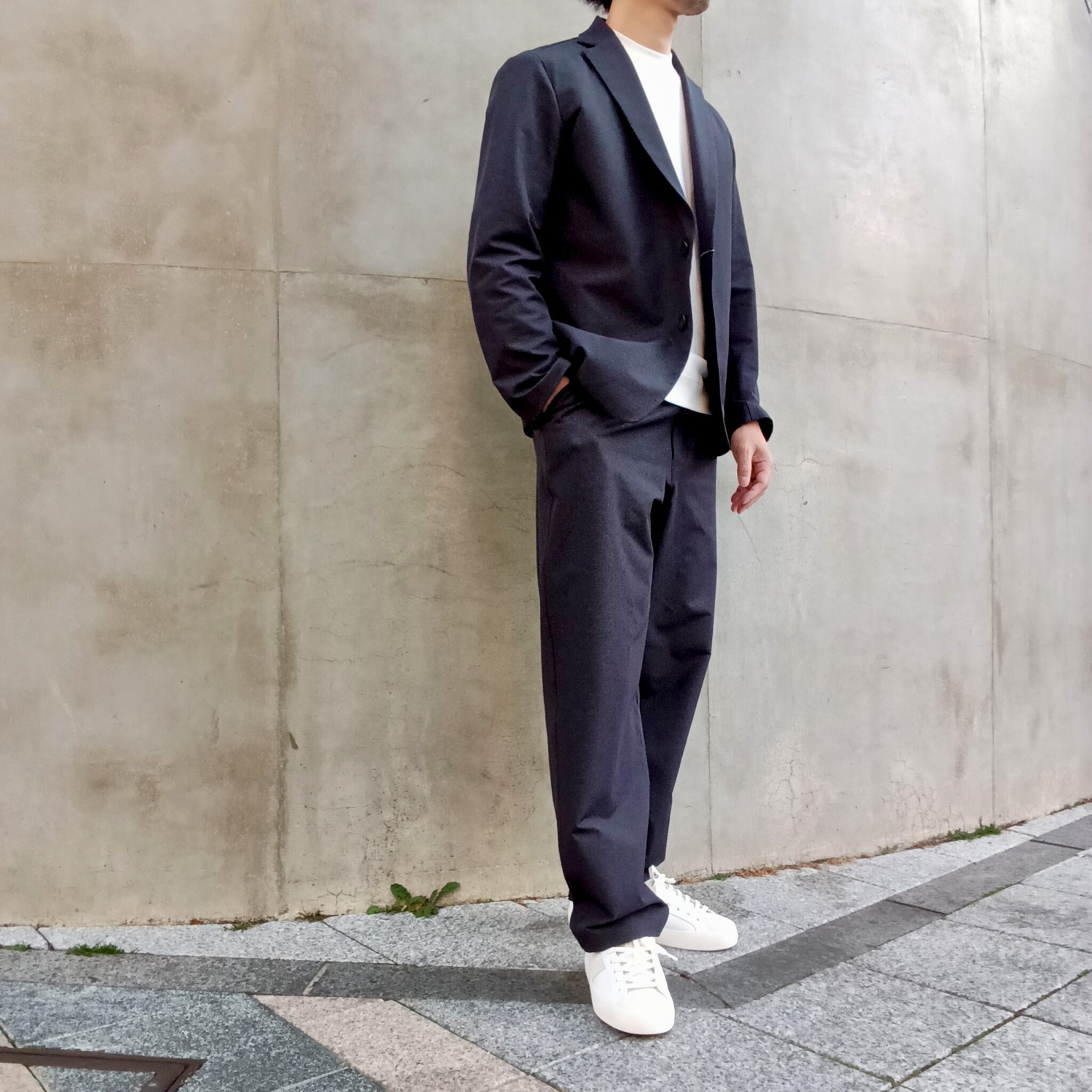 毎シーズン展開のナイロン/ポリエステルの4WAYストレッチ素材。中肉感でハリコシがあり、ナイロン特有のドライタッチとマットな表情が特徴です。アウトドアの定番素材を洗練されたタウンユースにブラッシュアップした素材です。カジュアルにもビジネスにも砕け過ぎないちょうど良さで着回しが効くリラックス2Bイージージャケット。ワンタックワイドパンツとセットアップ出来ます。