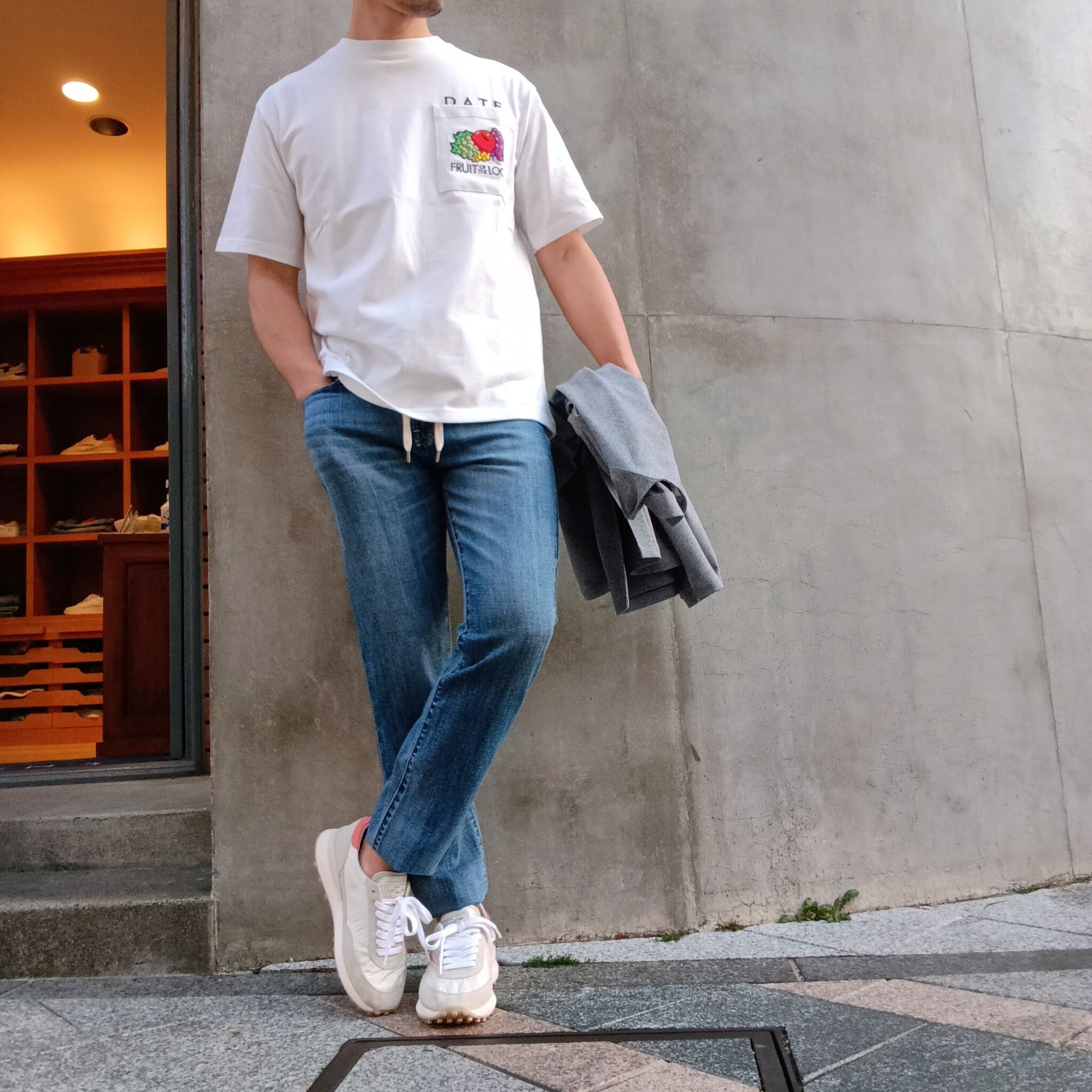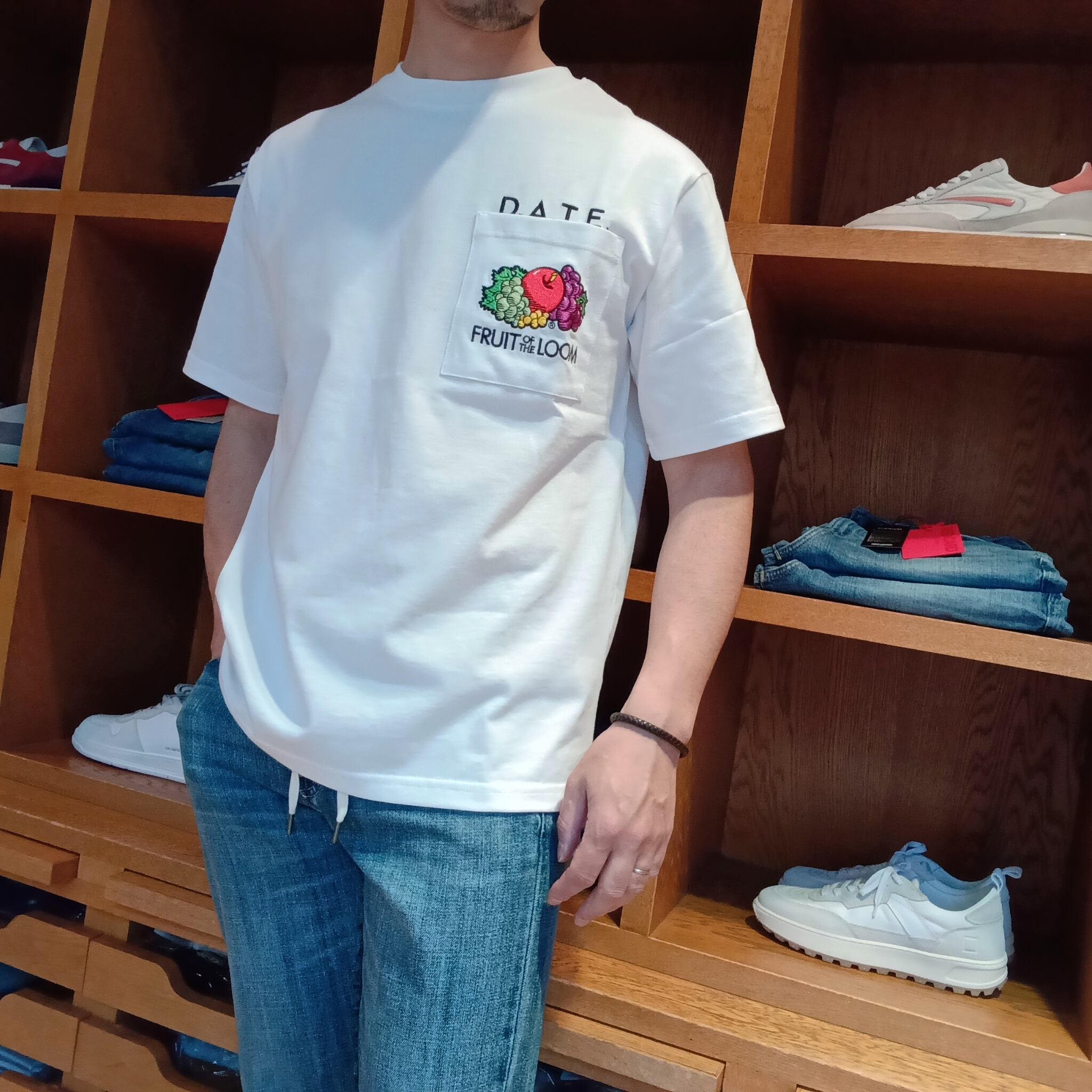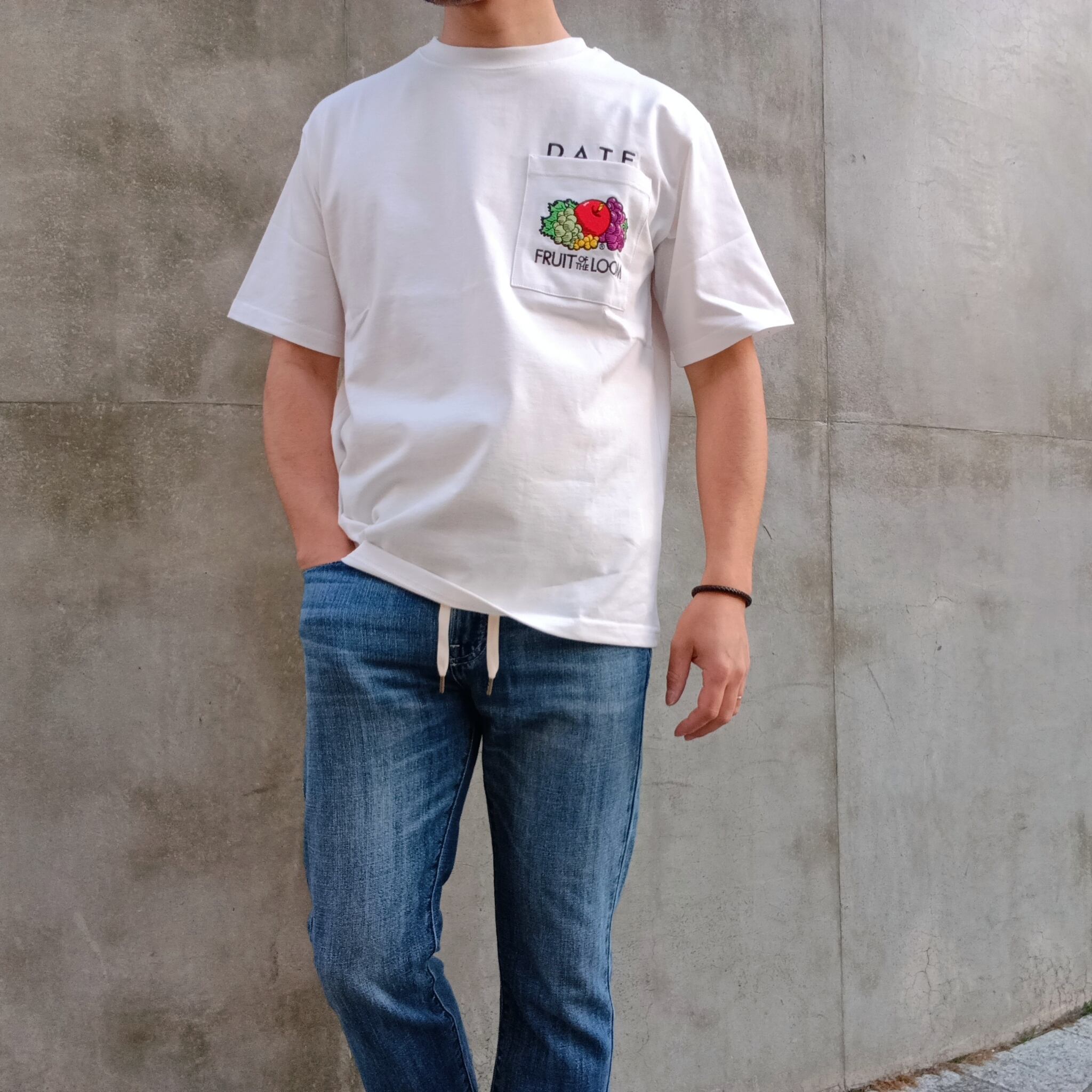 D.A.T.E.とFruit Of The Loomのコラボレーションから生まれたハーフレングスリーブのクルーネックTシャツ。フラットポケットにはD.AT.E. - FRUIT OF THE LOOM刺繍ロゴが入っています。使用されているすべての素材はイタリア製です。