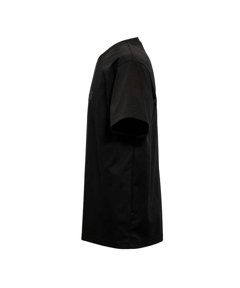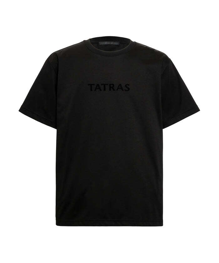立体感のあるベルベット調のフロントロゴが印象的なTシャツ。後ろにはラインプリントを配しました。ロゴもラインもボディと同系色にすることで、さりげないポイントになっています。