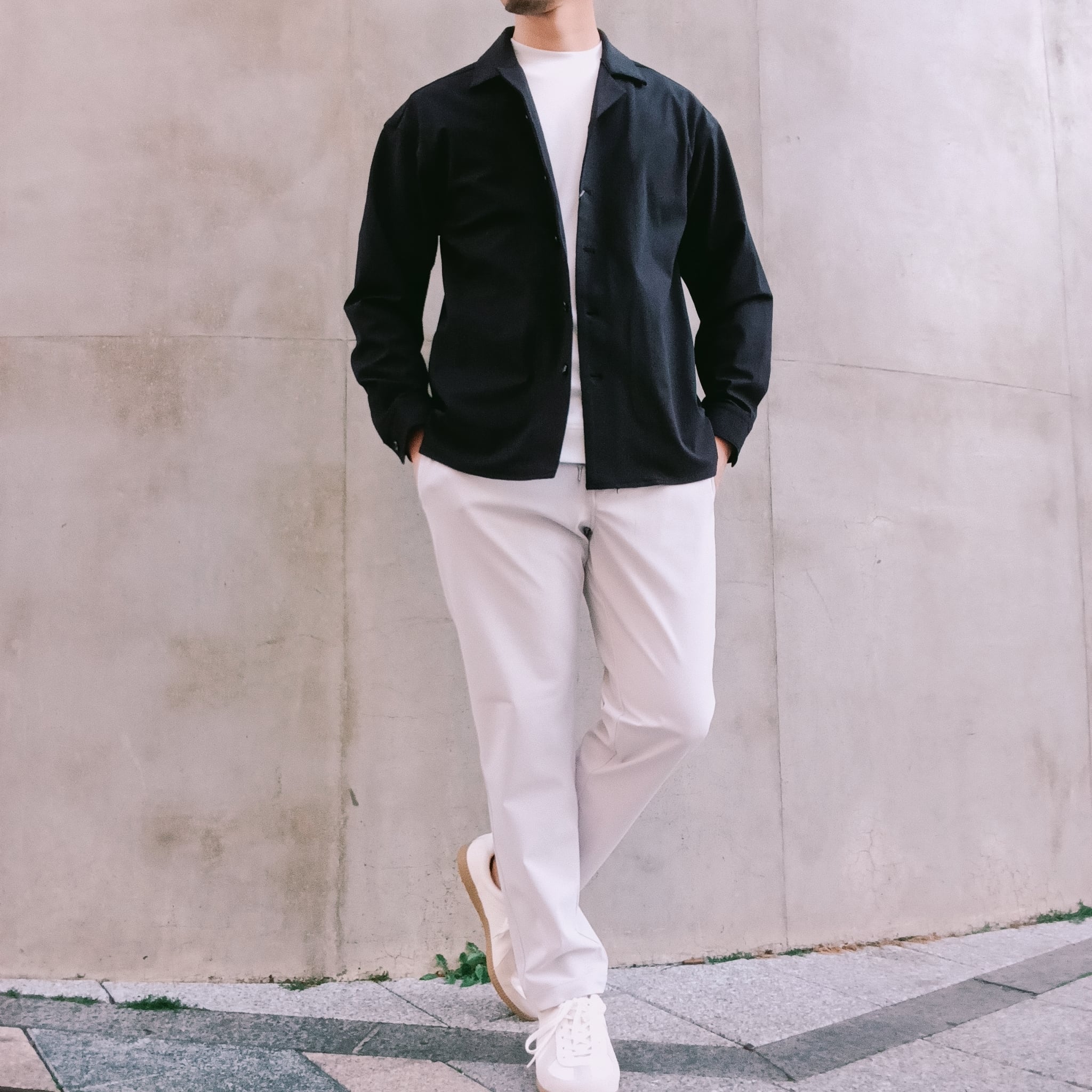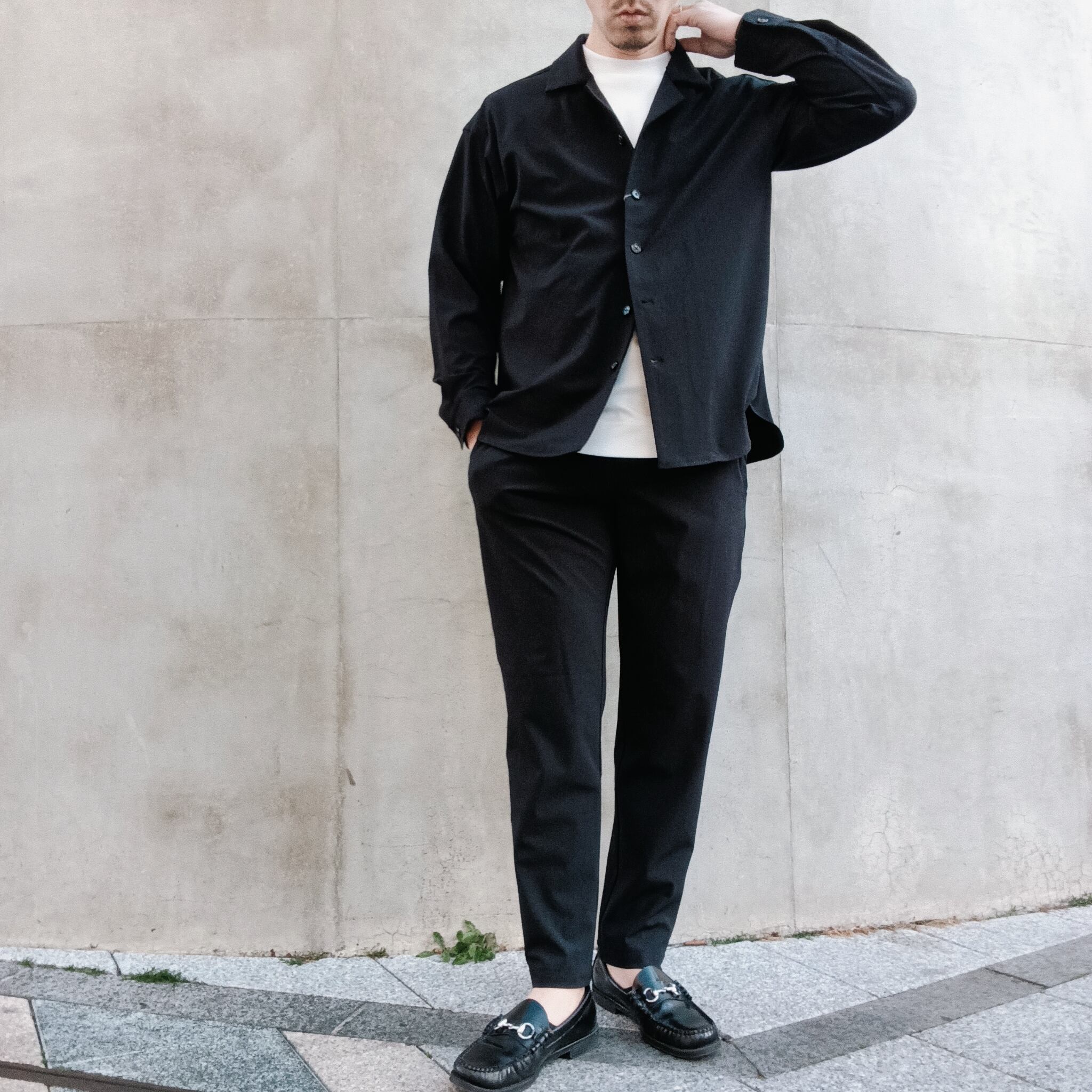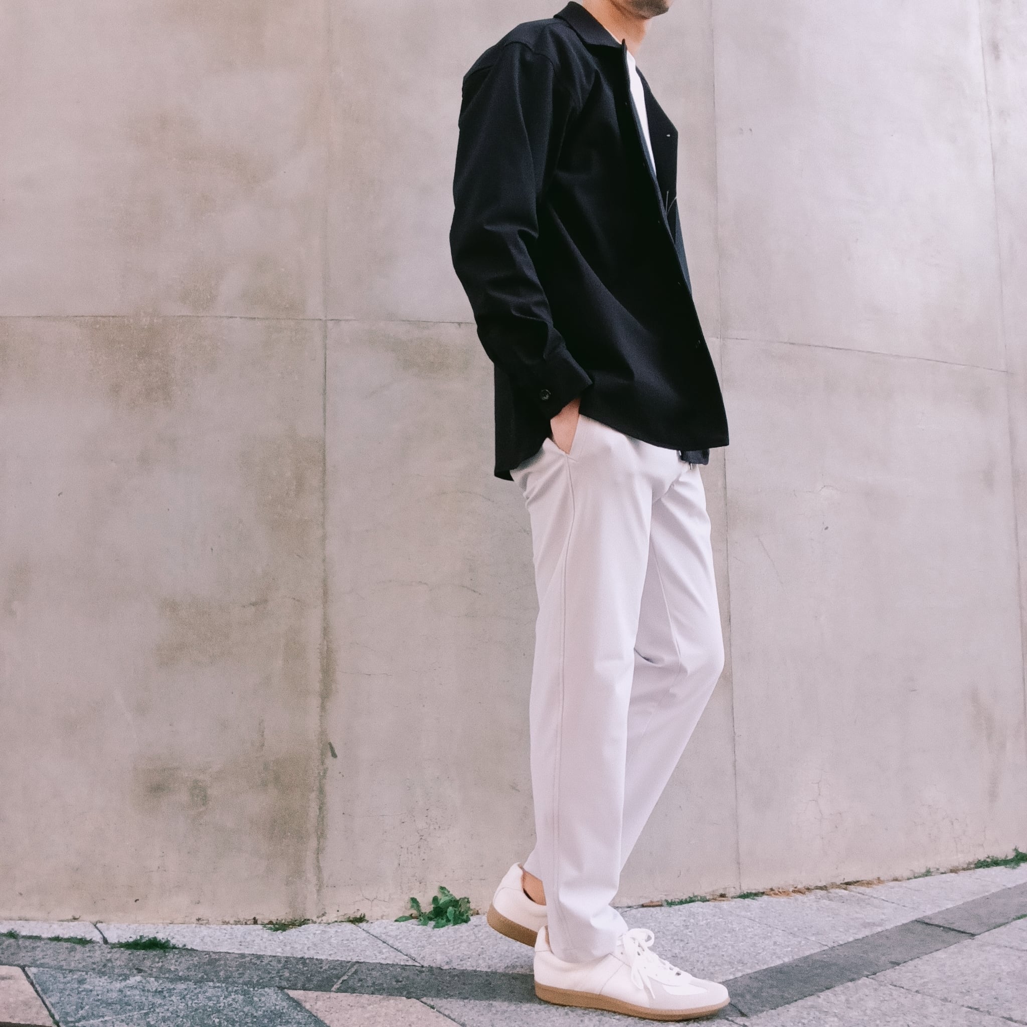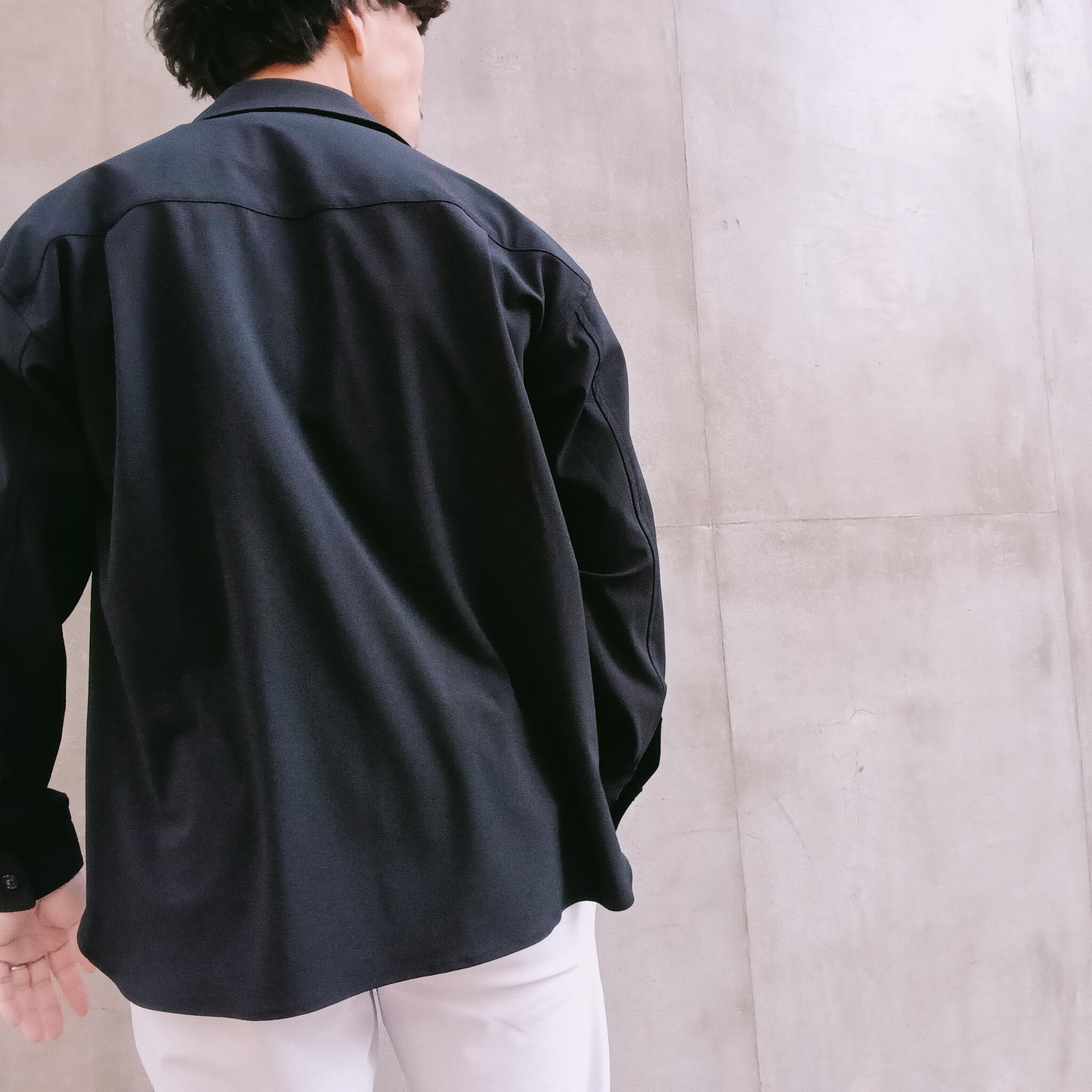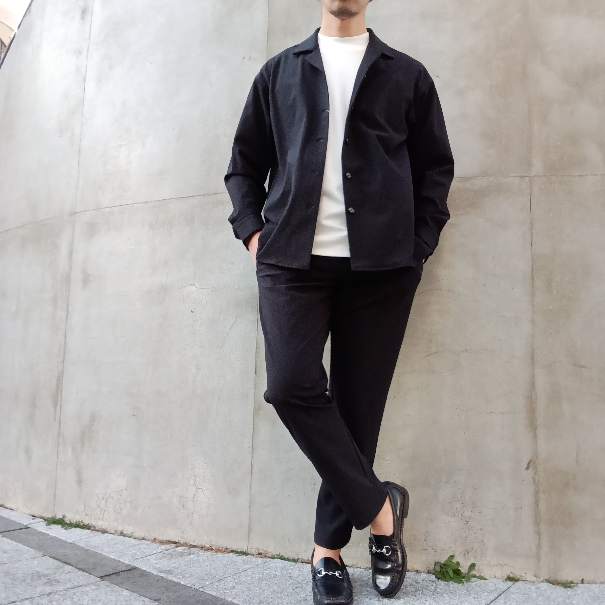 DRAYMASTERを使った多機能トリコットを使い、リラックス感のあるシルエットで作製したシャツジャケット。小さめのラペルやミニマムなディテールにより「シャツ以上アウター未満」の便利なアイテムに仕上げています。凹凸ある上品な表情と機能性を併せ持った素材使いはビジネスからシックなカジュアルスタイルにと幅広いシーンで活躍してくれます。両脇にはシームポケット付き、同素材でリラックスイージーパンツも展開中です。