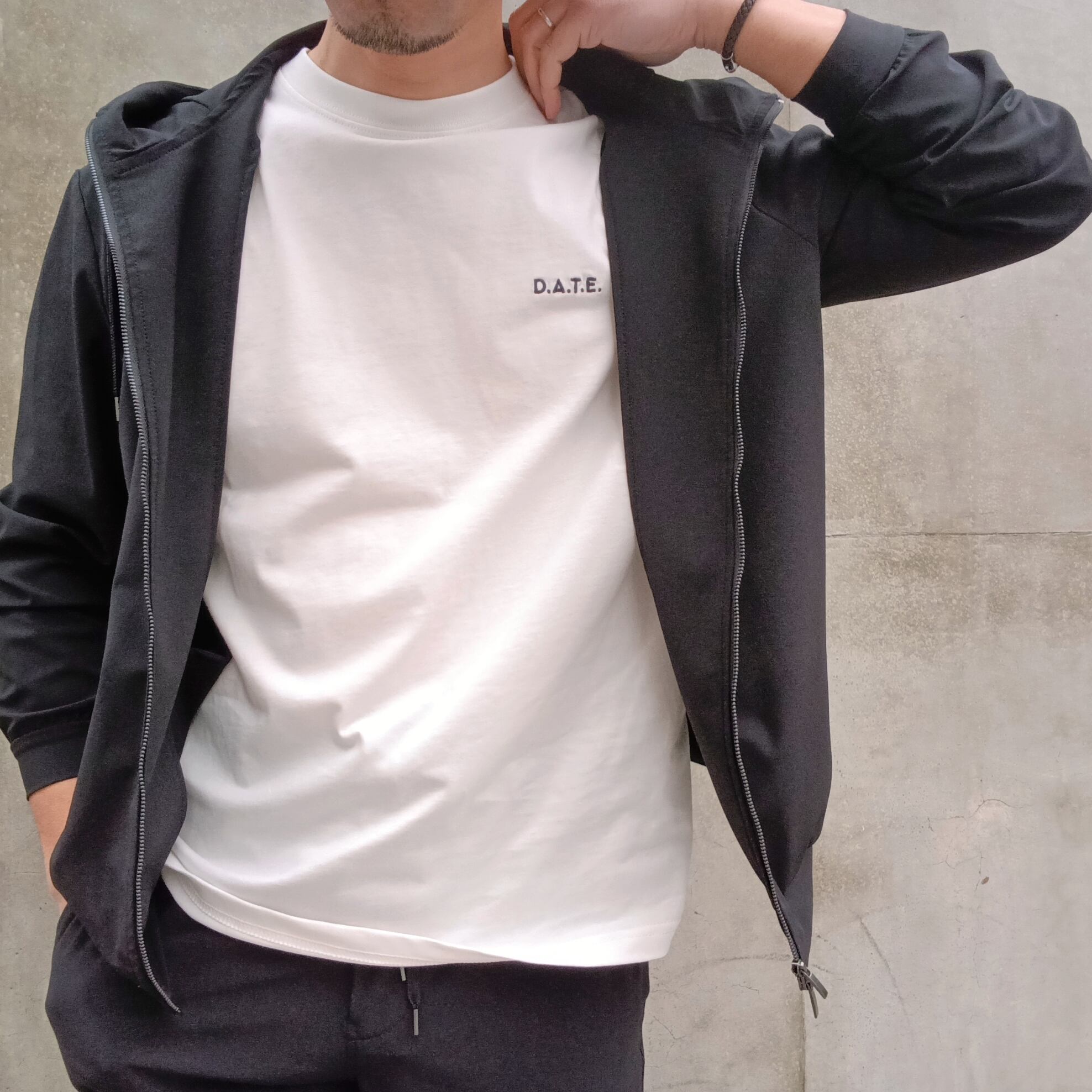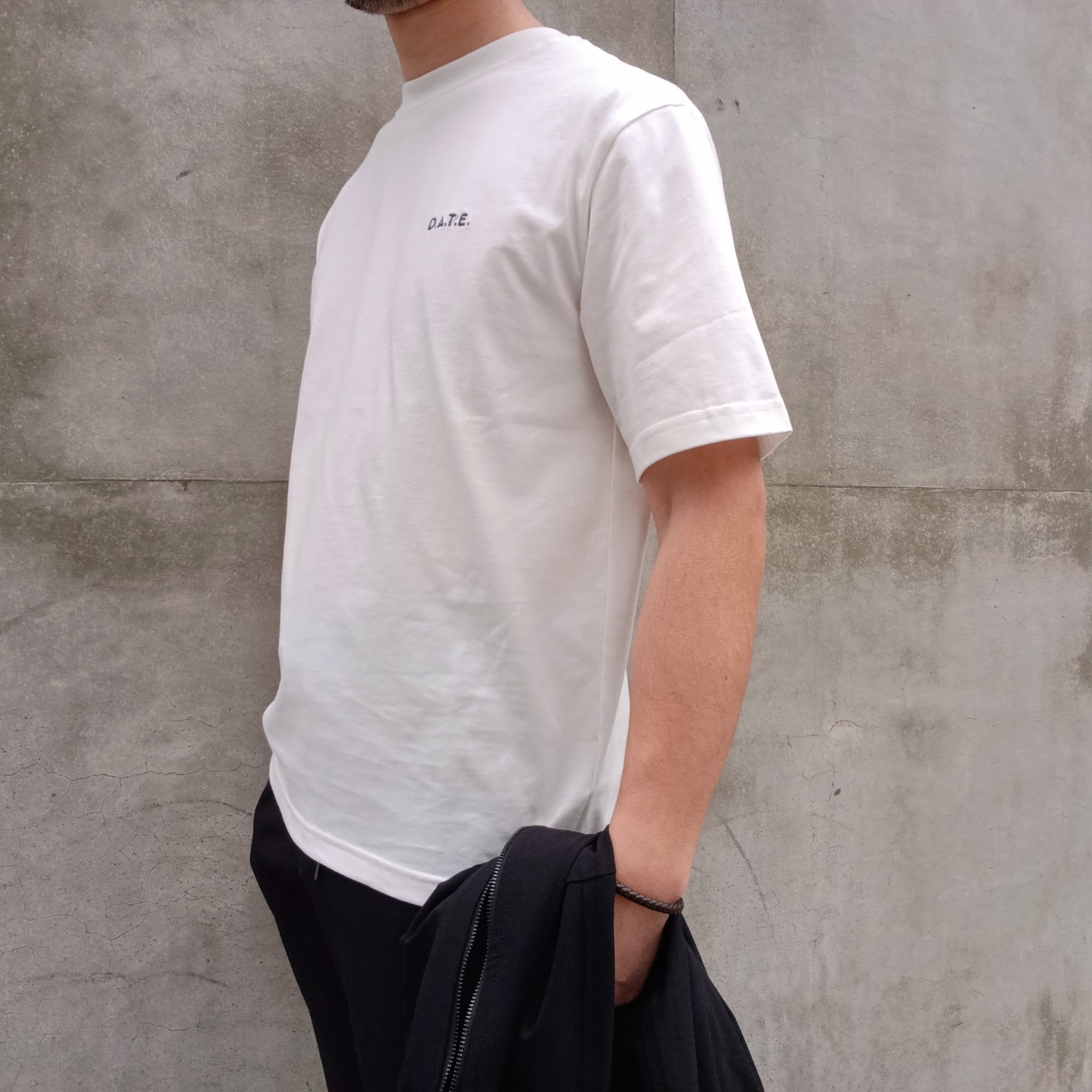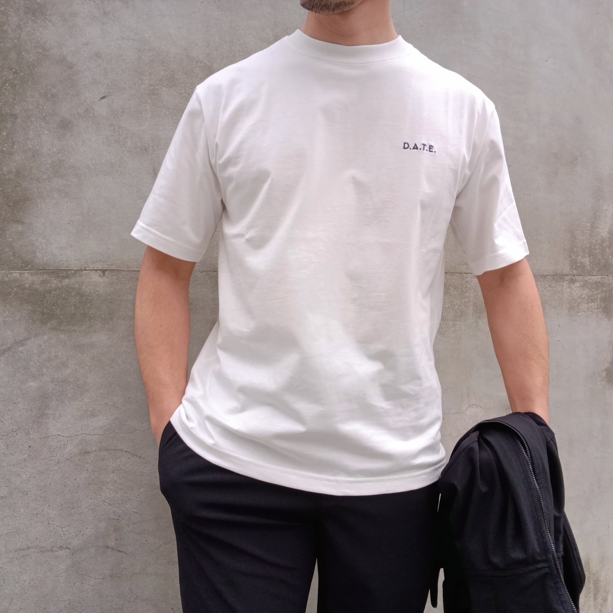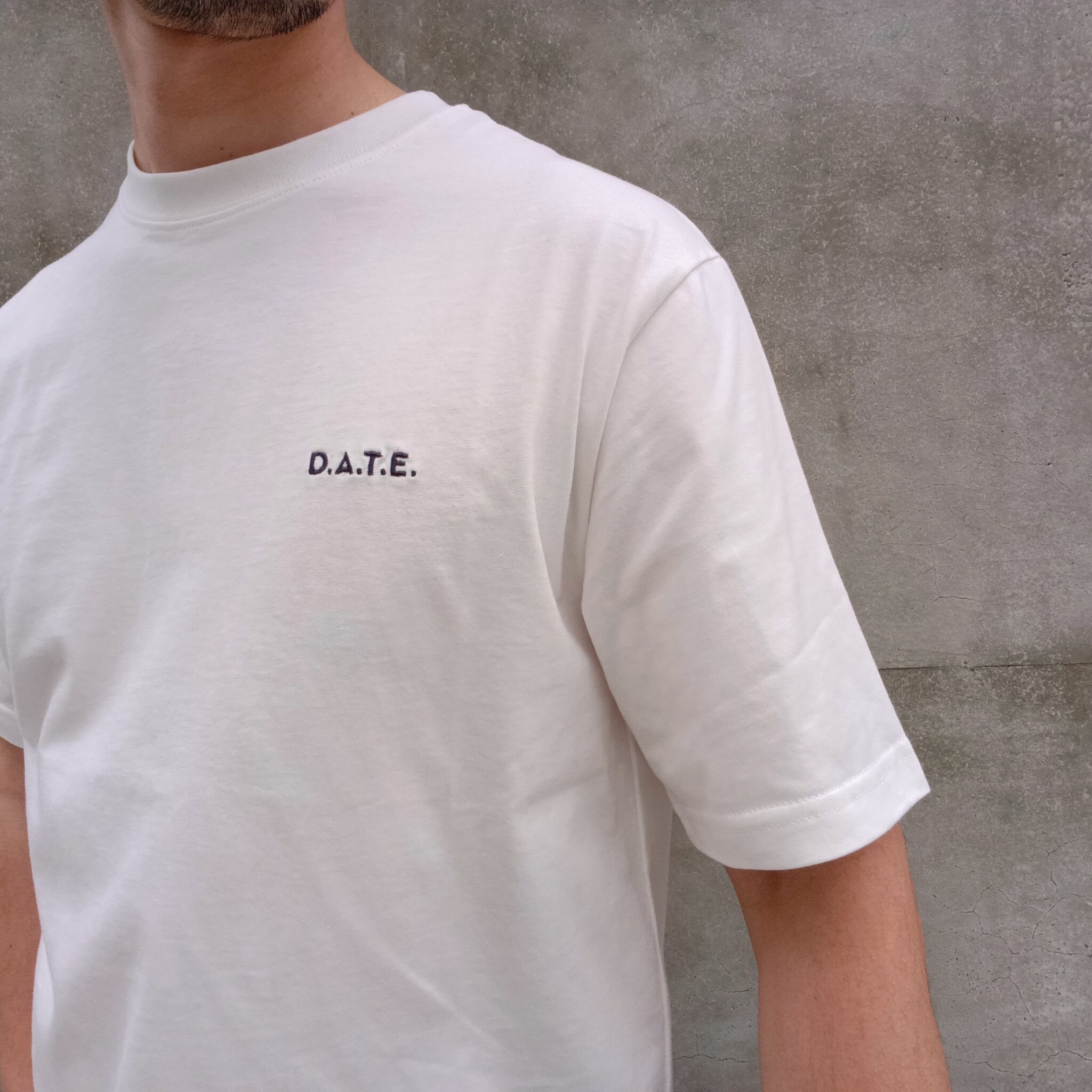 フロントにD.A.T.E.の刺繍が入ったベーシックなクルーネックのTシャツ。使用されているすべての素材はイタリア製です。