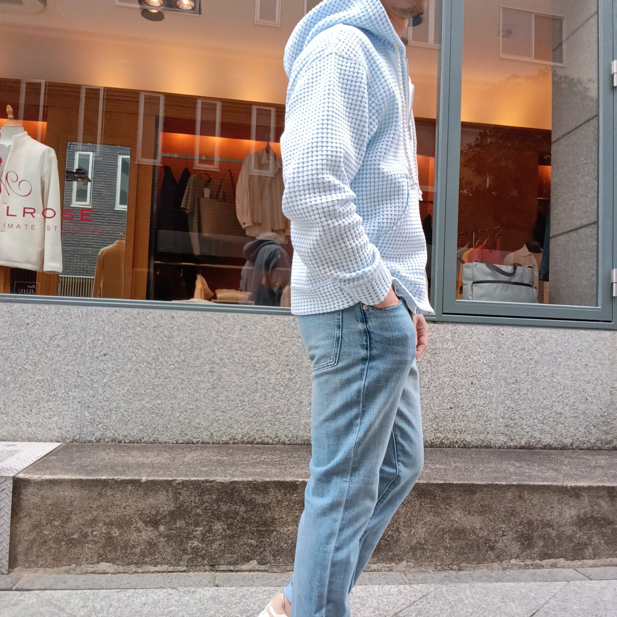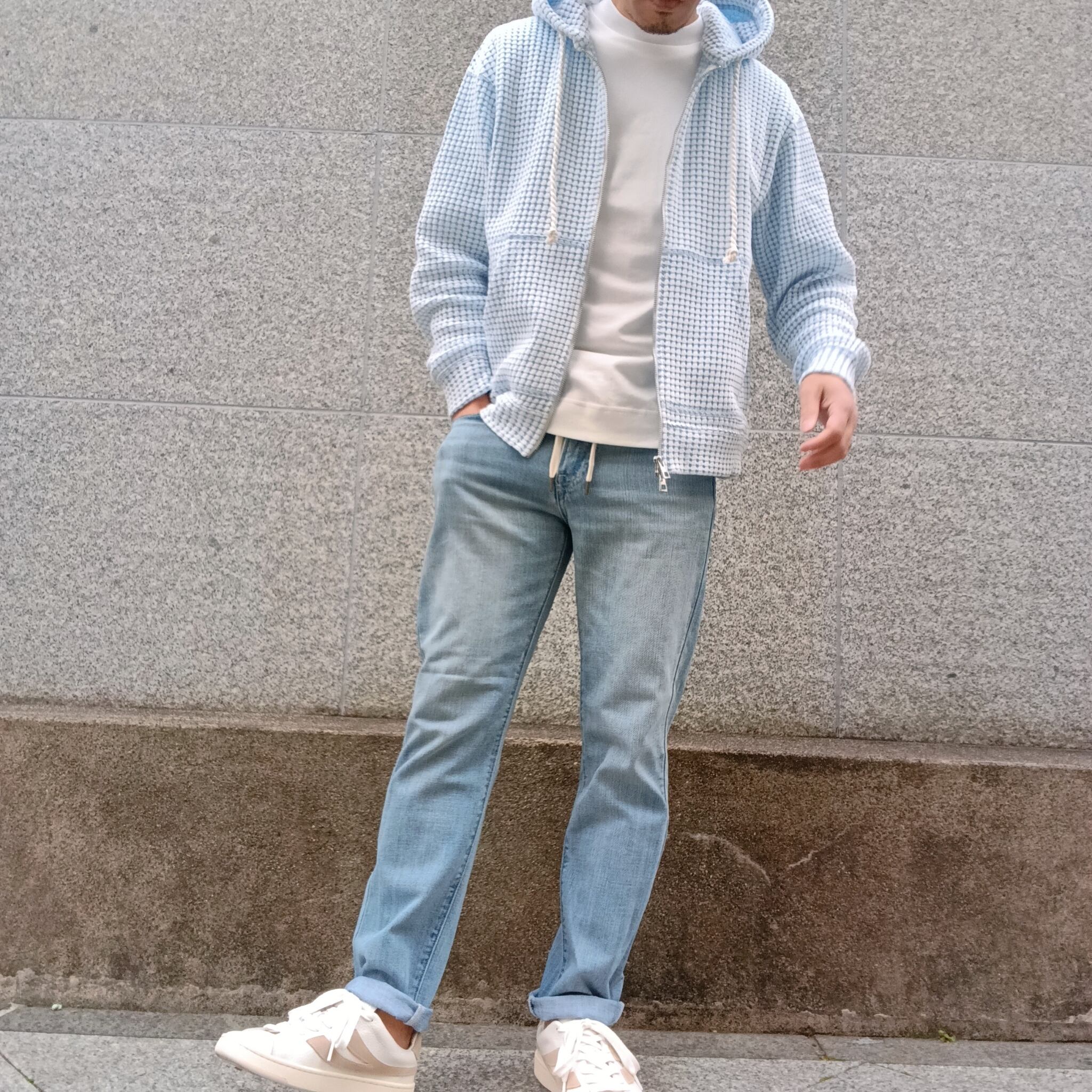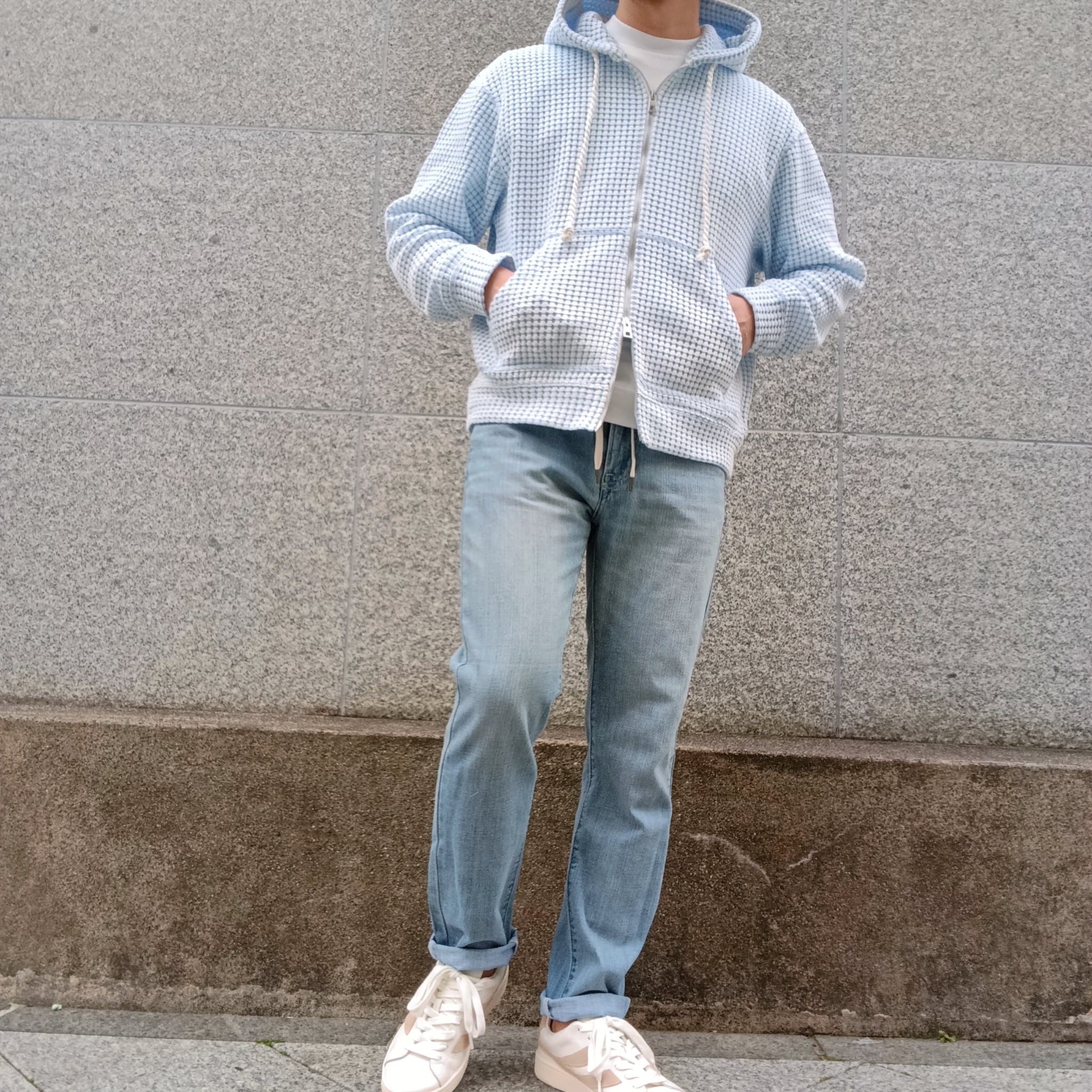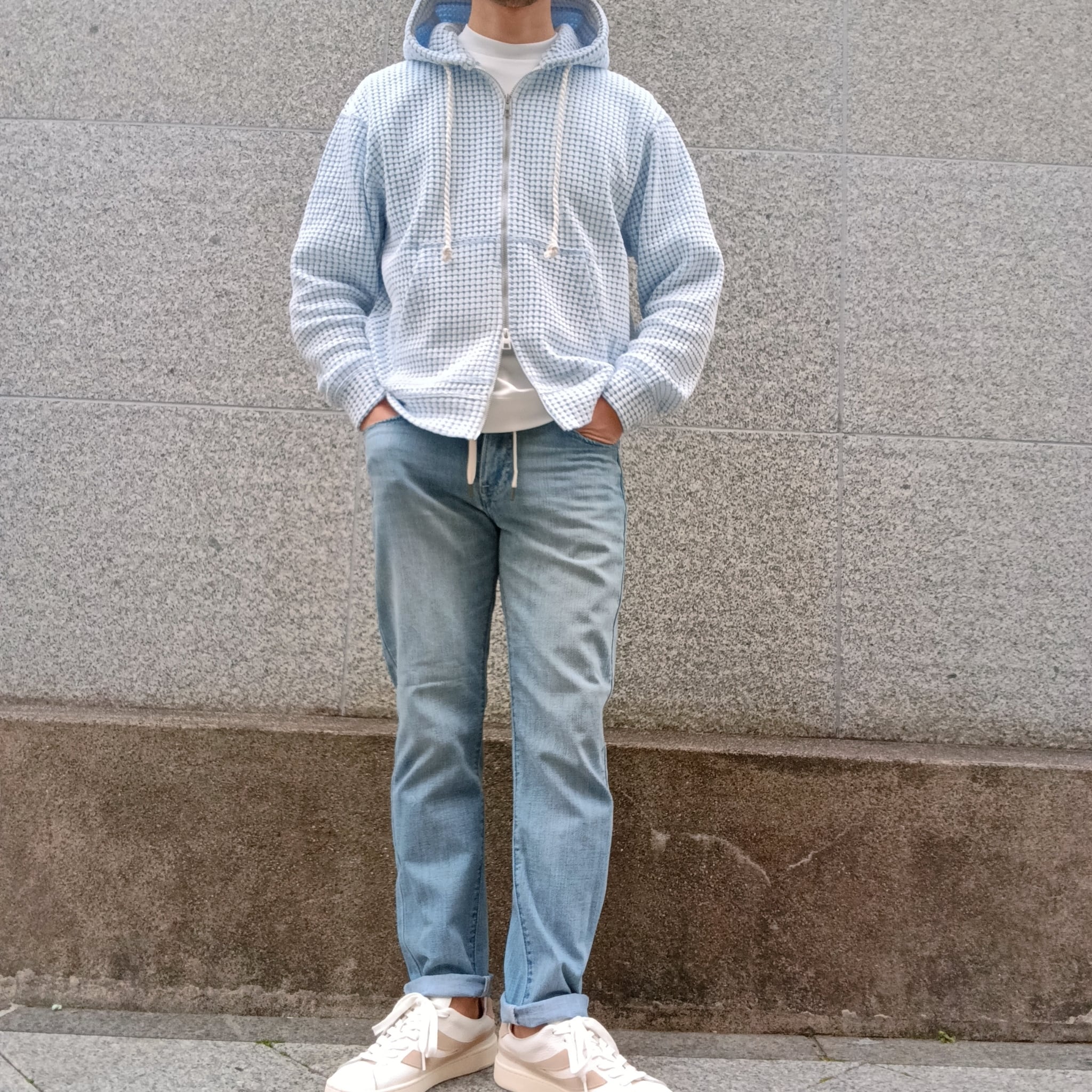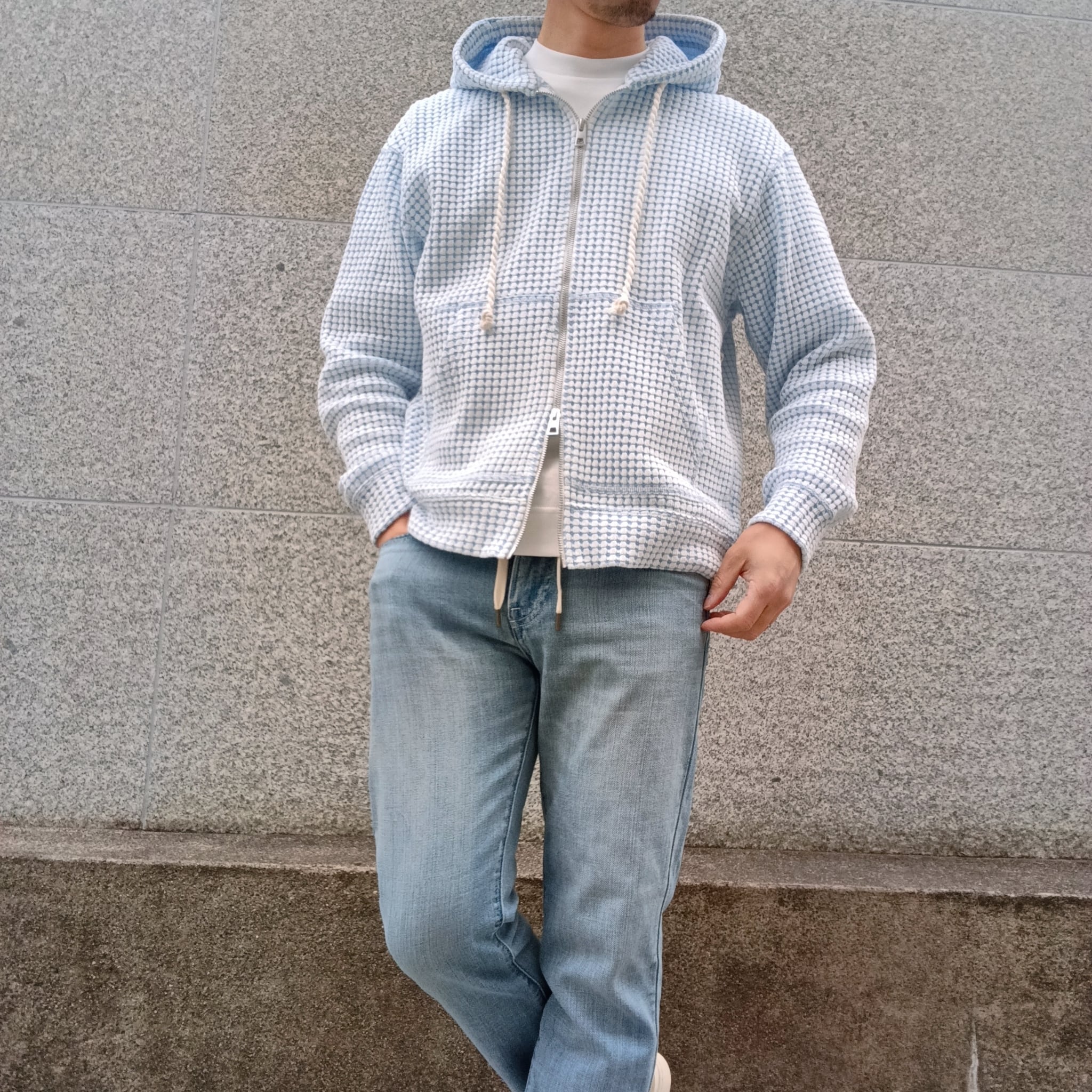 毎シーズン高い人気を誇るワッフル素材のフーディ。国内でも希少な編み機で独特の凹凸感を持たせたボディは、肌離れがよくてソフトなタッチがカラダに心地よくフィット。従来のタイトな形からリラックスフィットにアップデイトされたシルエットも魅力。