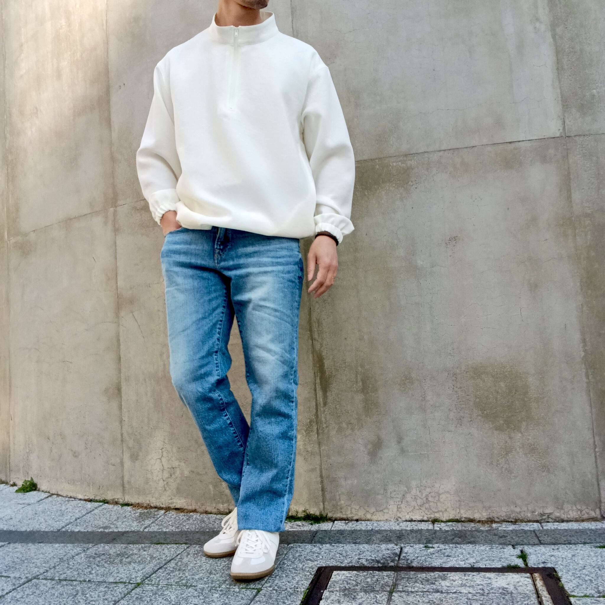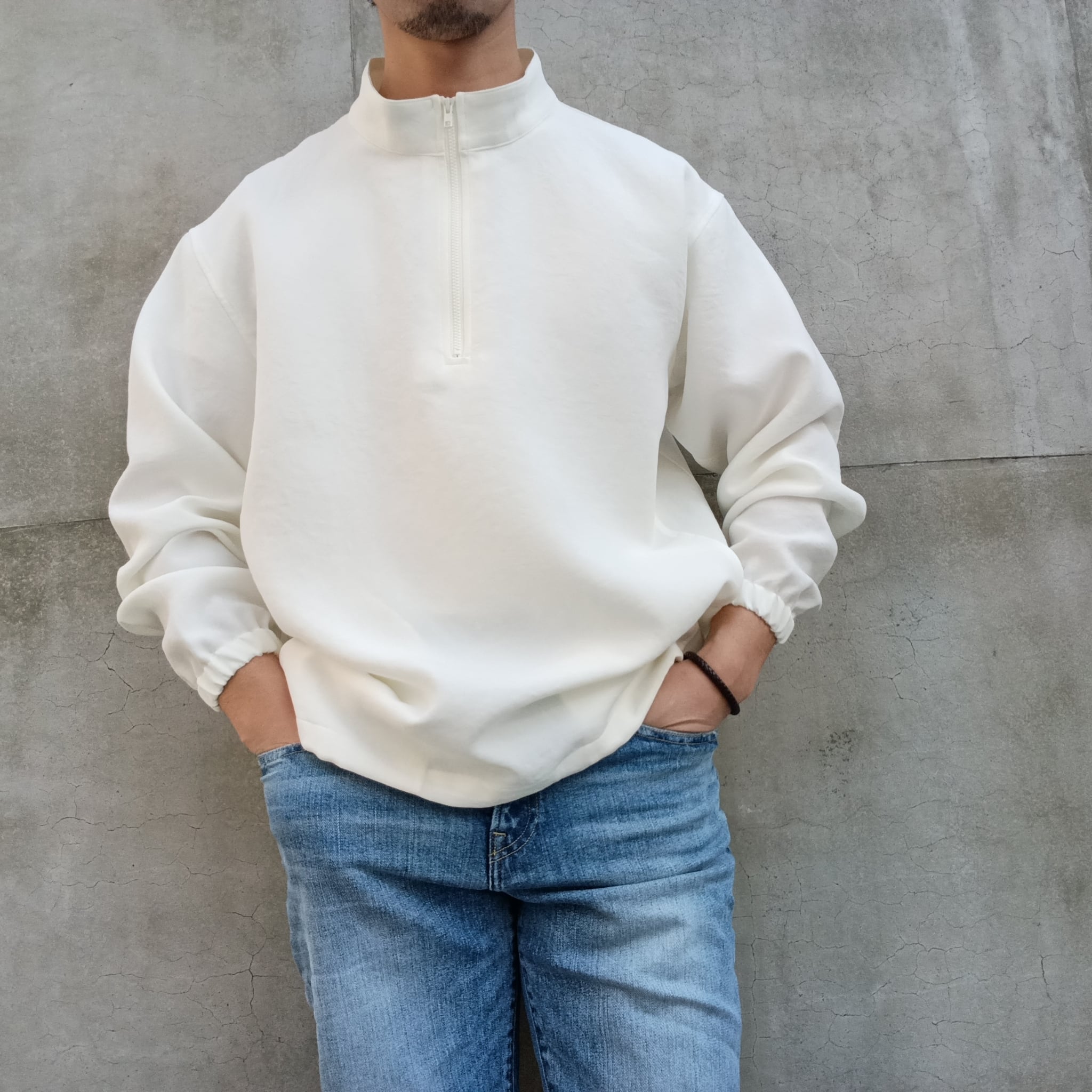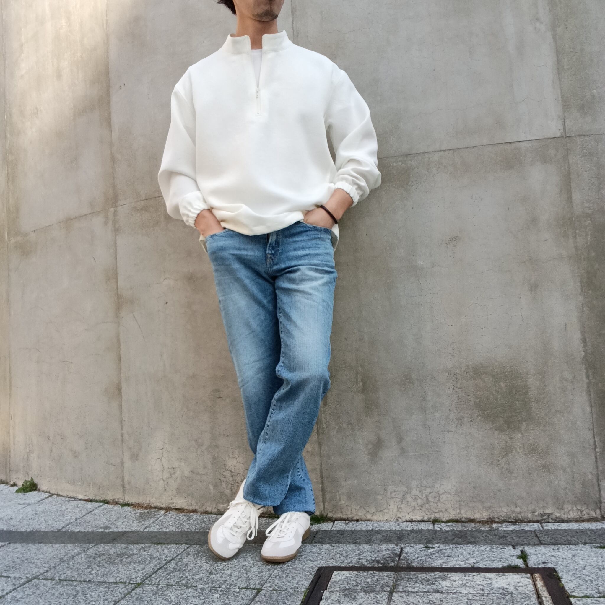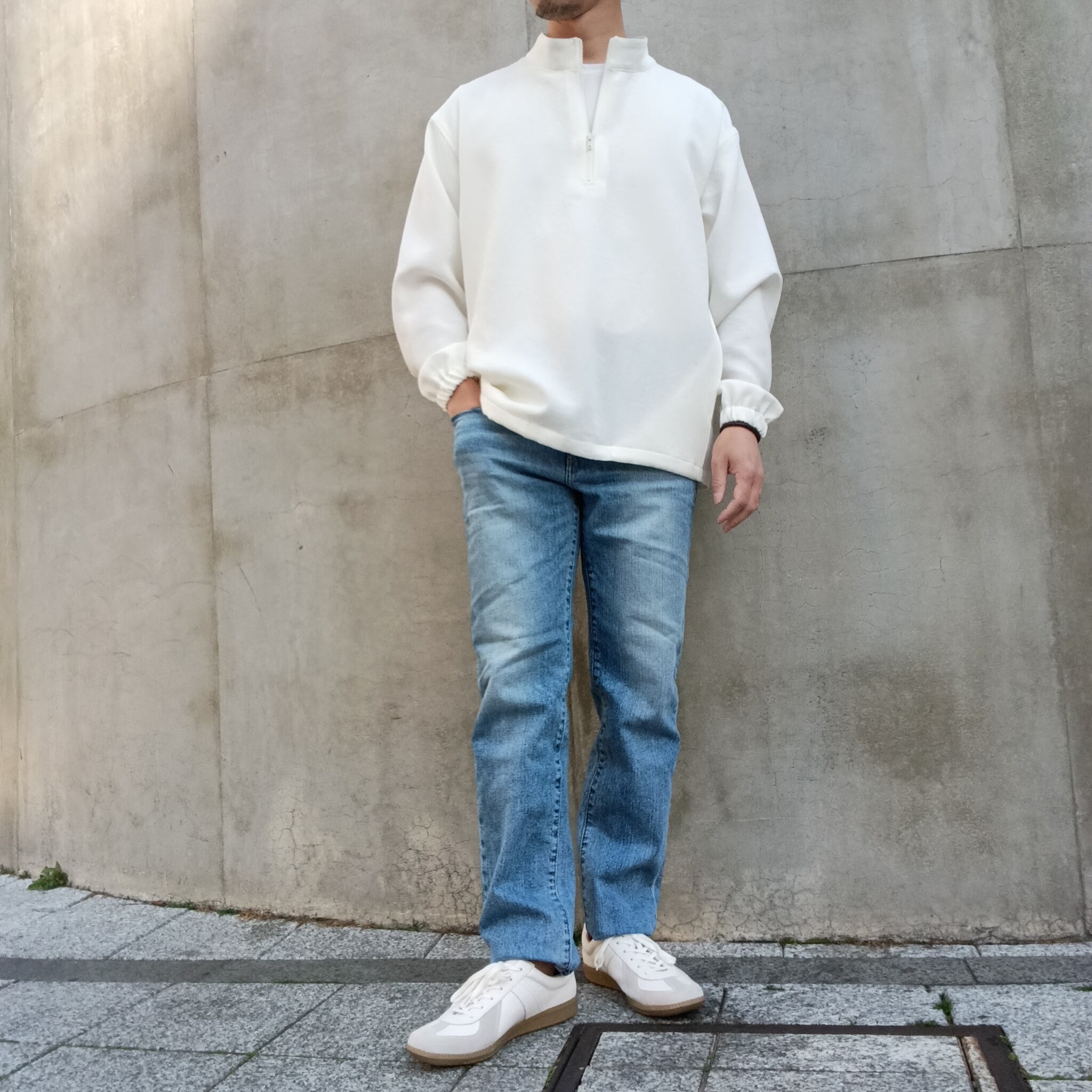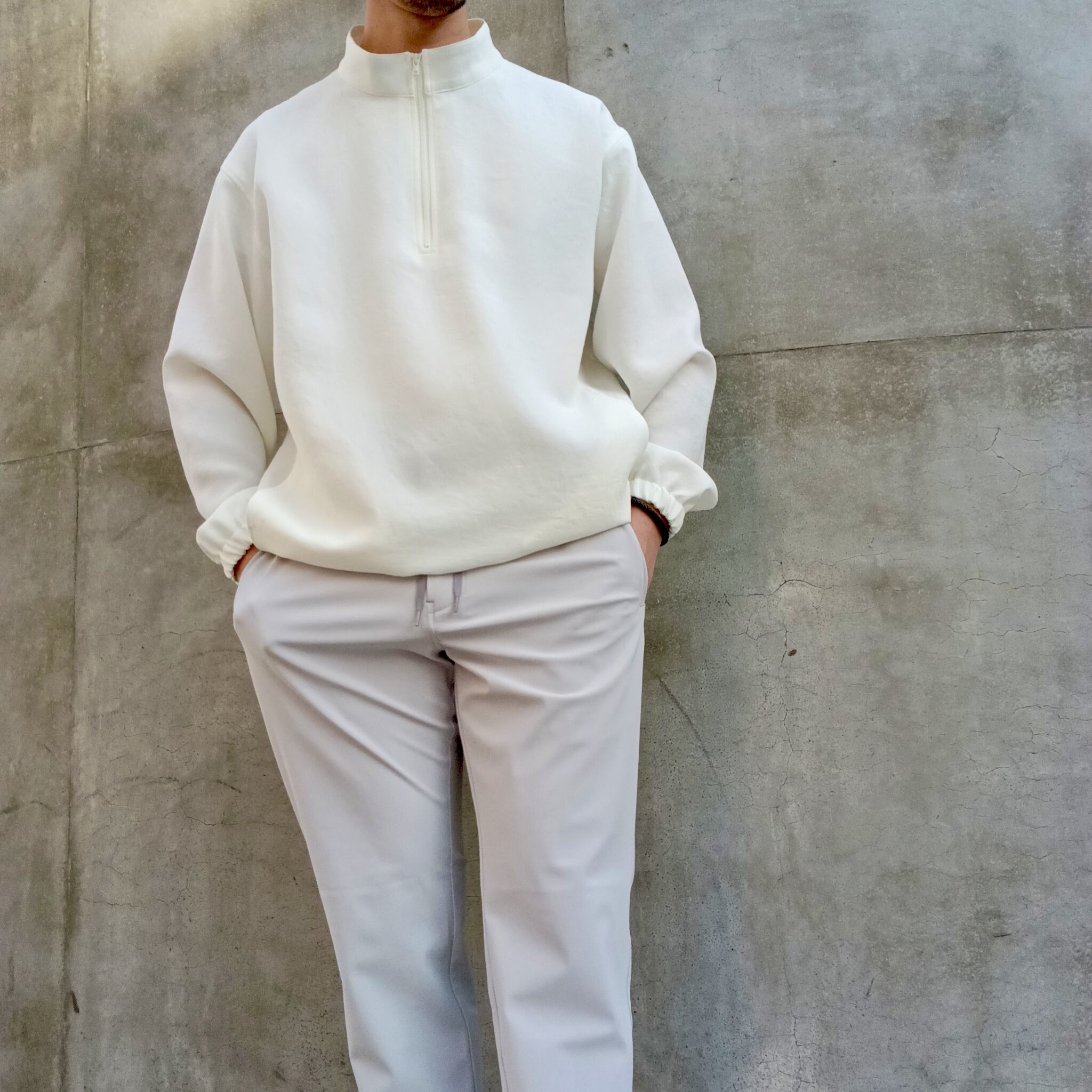 TEIJIN「TRIXIONⓇ」糸を使用し、ナチュラル感のある二重織素材。清涼感のあるさらっとしたドライタッチと、タテヨコのマルチハイストレッチが着用時にストレスを感じさせずリラックス感のある素材です。ブラックの発色も綺麗で大人っぽい雰囲気に仕上がっています。昨秋より大注目のスタンドジップシャツ型。