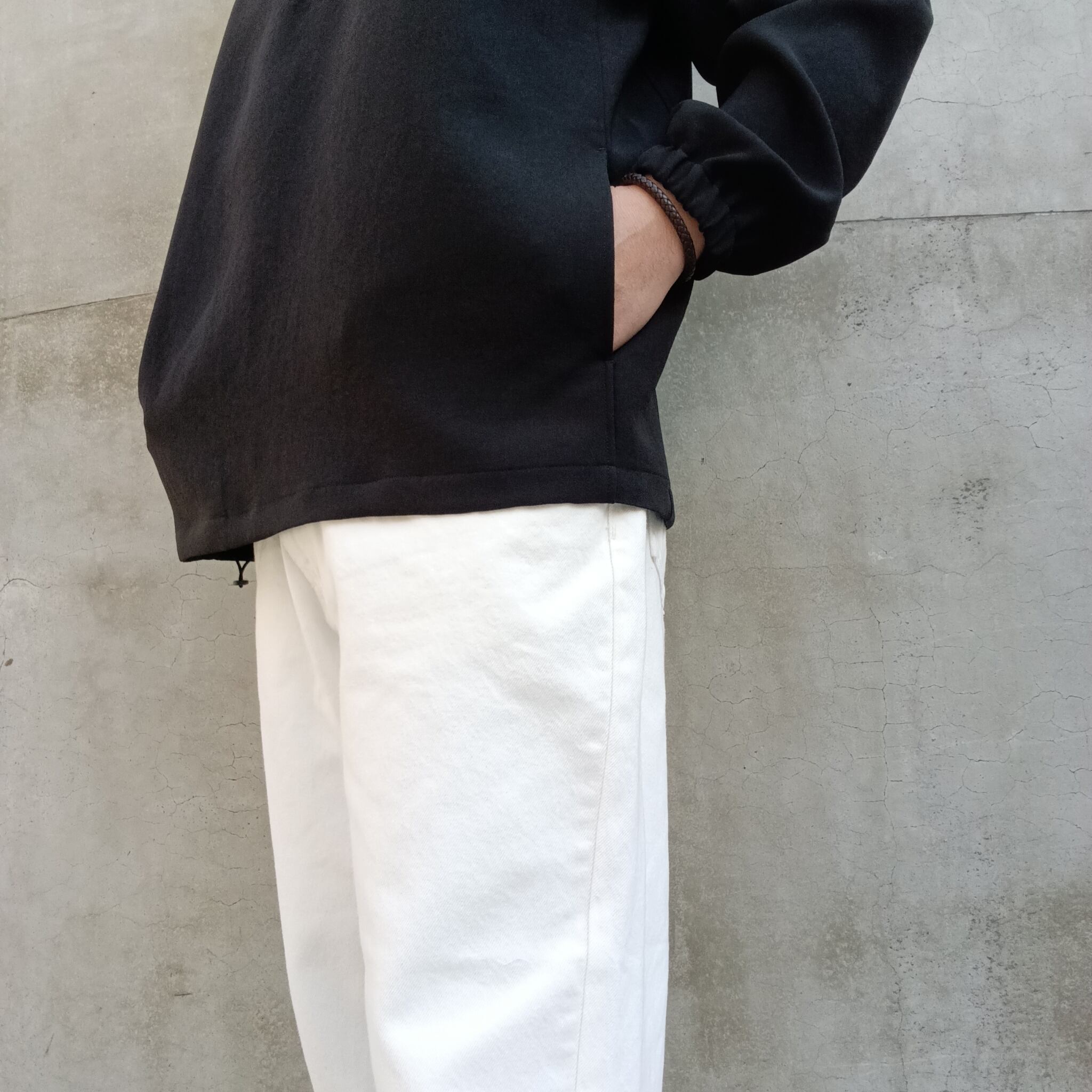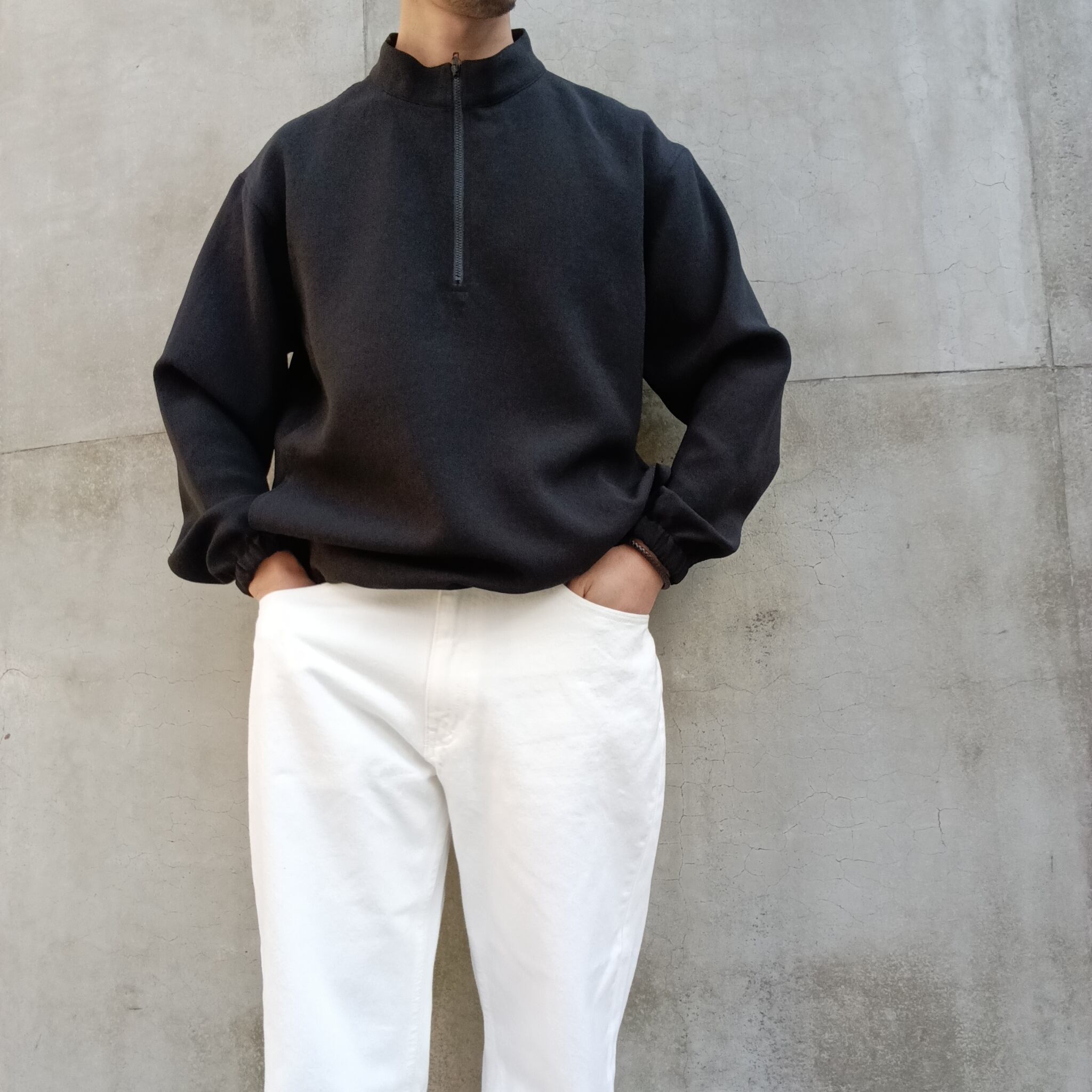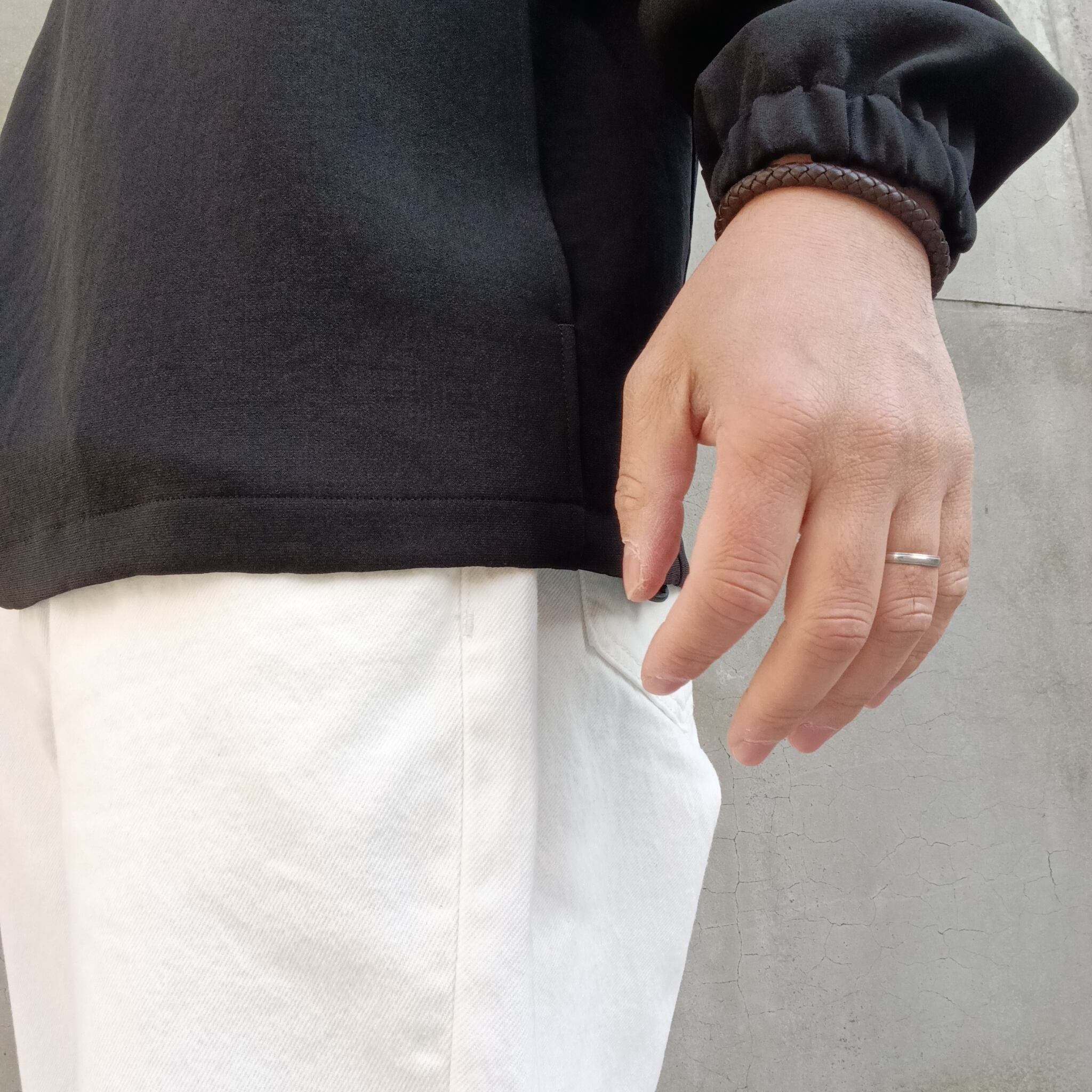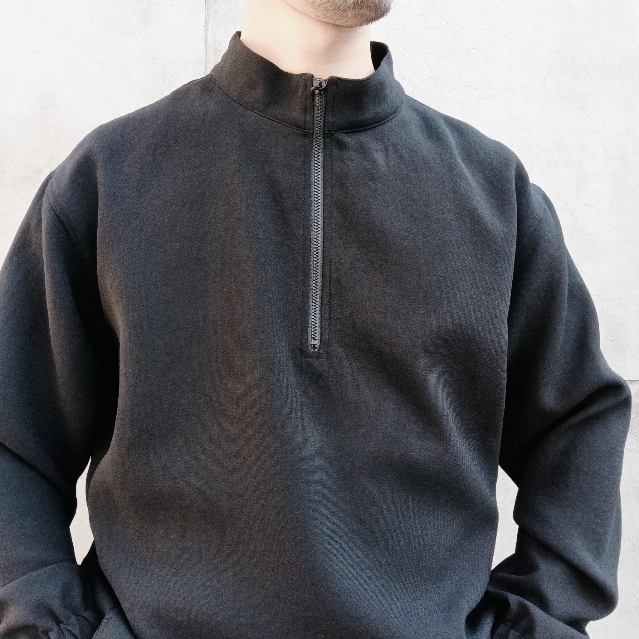 TEIJIN「TRIXIONⓇ」糸を使用し、ナチュラル感のある二重織素材。清涼感のあるさらっとしたドライタッチと、タテヨコのマルチハイストレッチが着用時にストレスを感じさせずリラックス感のある素材です。ブラックの発色も綺麗で大人っぽい雰囲気に仕上がっています。昨秋より大注目のスタンドジップシャツ型。