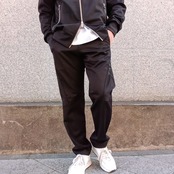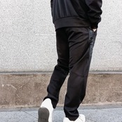 スタイルアップに期待が持てる、シャープなテーパードシルエットのパンツ。 上品な光沢とキックバック性を持つ、ダンボールニットを使用しました。 両サイドにあしらわれた大きなロゴプリントが目を引きます。 ウエストはドローコード式のため、フィット感のあるストレスフリーな穿き心地が実現。 スポーティなムードを漂わせながらも、洗練された表情に仕上がっている、アクティブシーンからタウンユースにまで活躍する一本です。