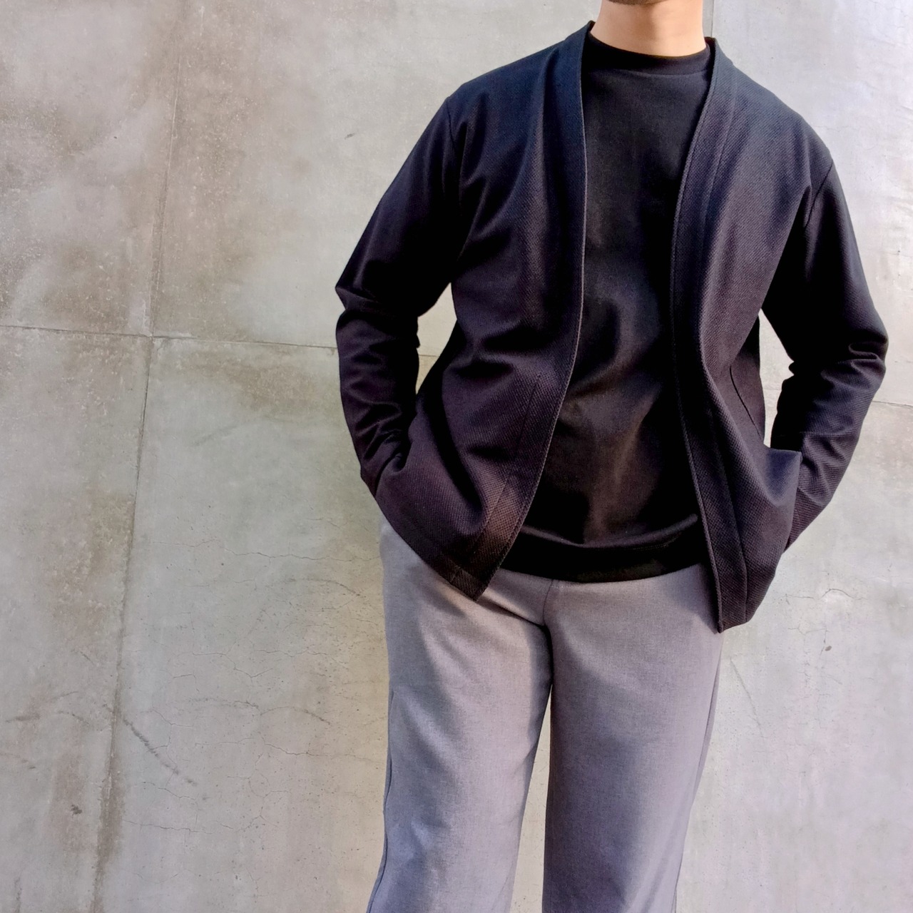 着用した際の膨らみのある素材感がとても気持ち良く、それでいてサラッとした涼感も感じさせてくれる上質な一着。