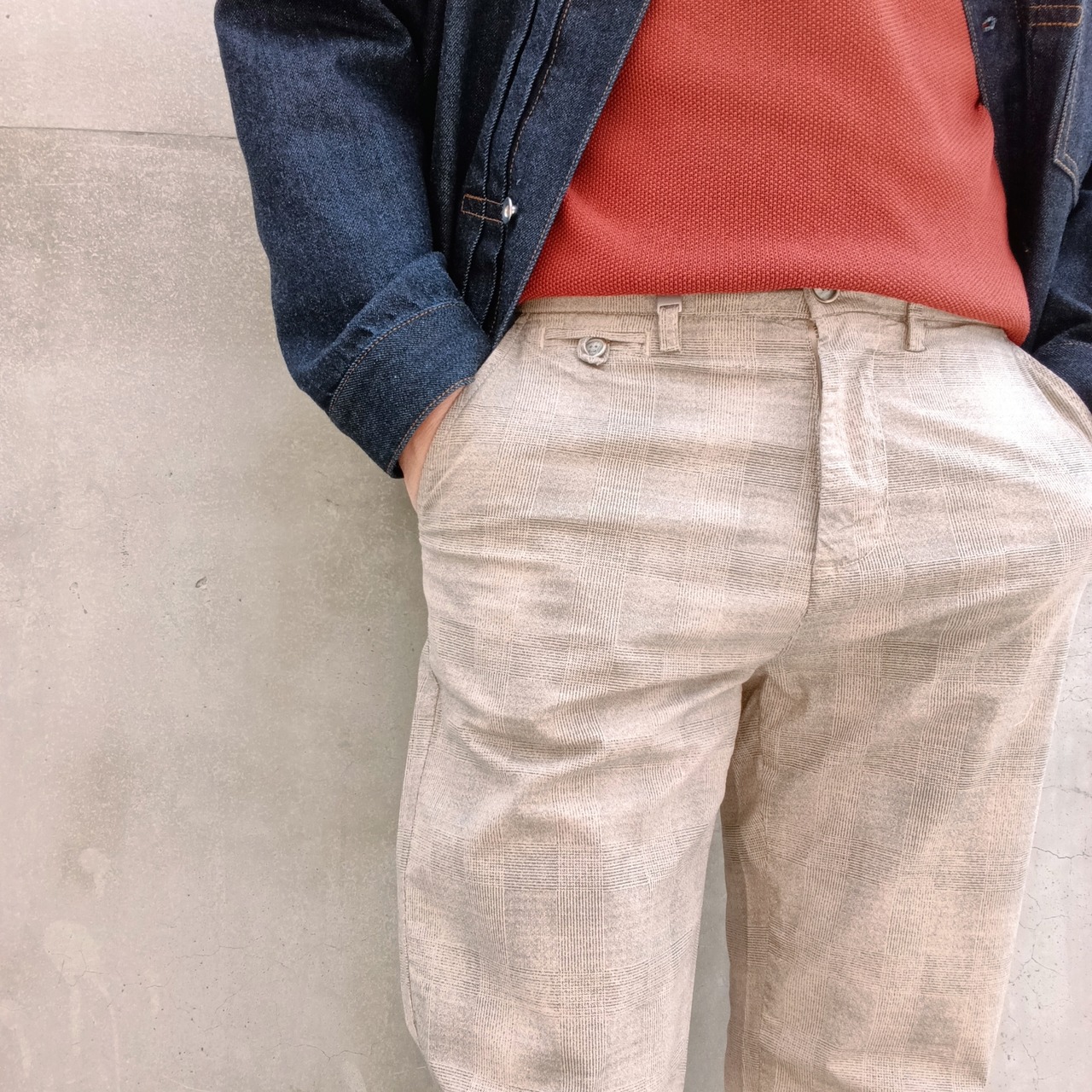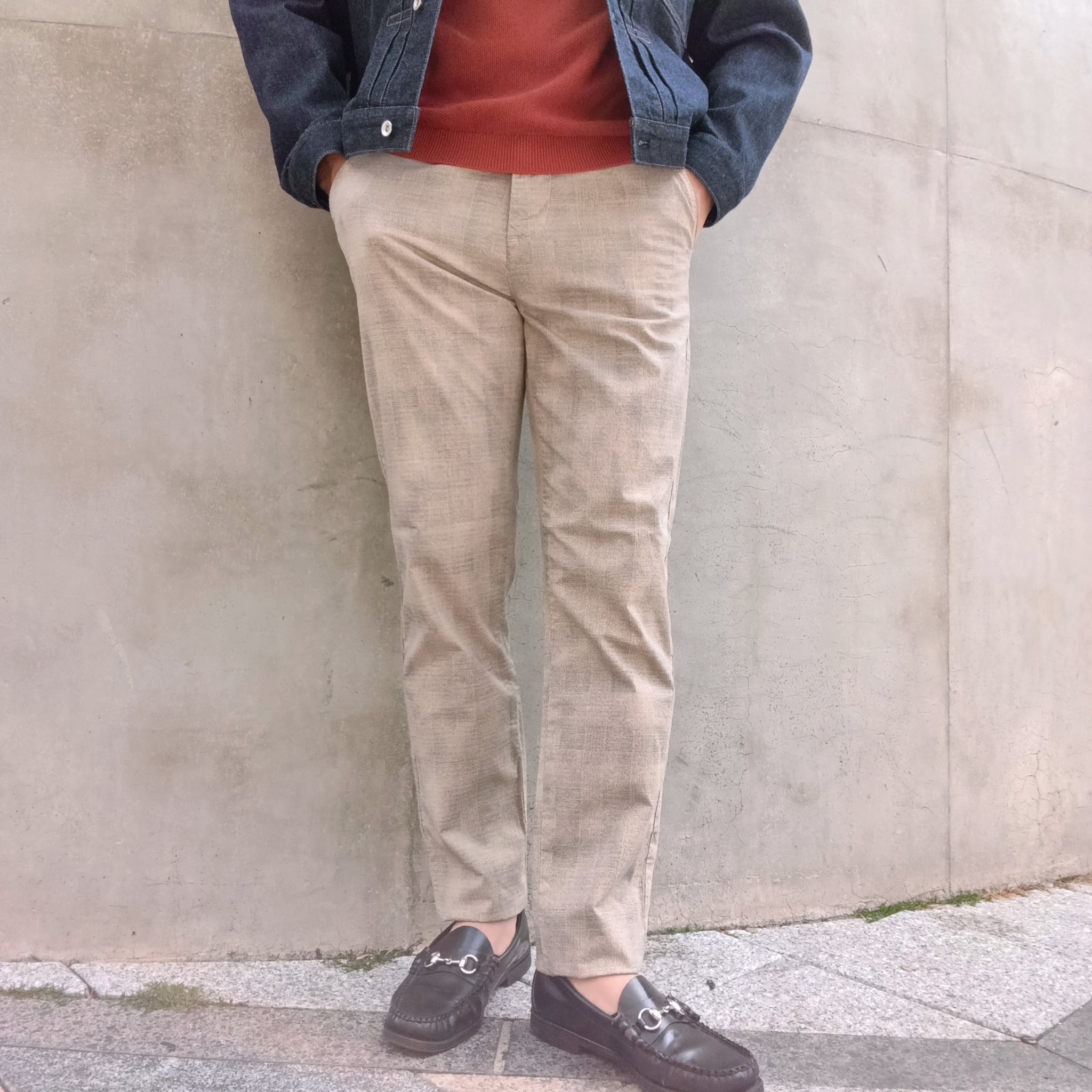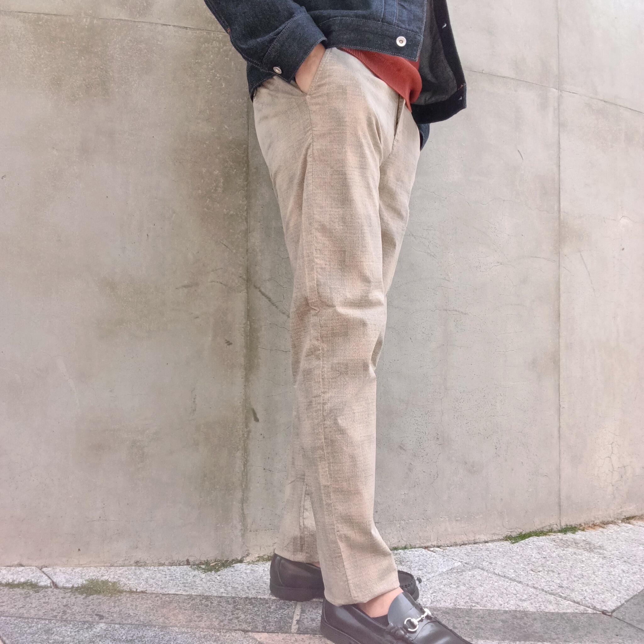 ジャケパンスタイルでもカジュアルでもセンスのある大人の雰囲気を作るチェックパンツ。チェックパンツが初めてでも、遠目に見える細かい柄なので穿きやすいチェックパンツです。また近目にはさりげないチェック柄で無地のパンツとはまた違ったおしゃれさを出すことが出来ます。スマートな美シルエットながら、予想を超えるストレッチと穿きやすさに病みつきになる穿き心地。無駄な装飾がなくシンプルなディテールで様々なシーンに使いやすいチェックパンツです。
