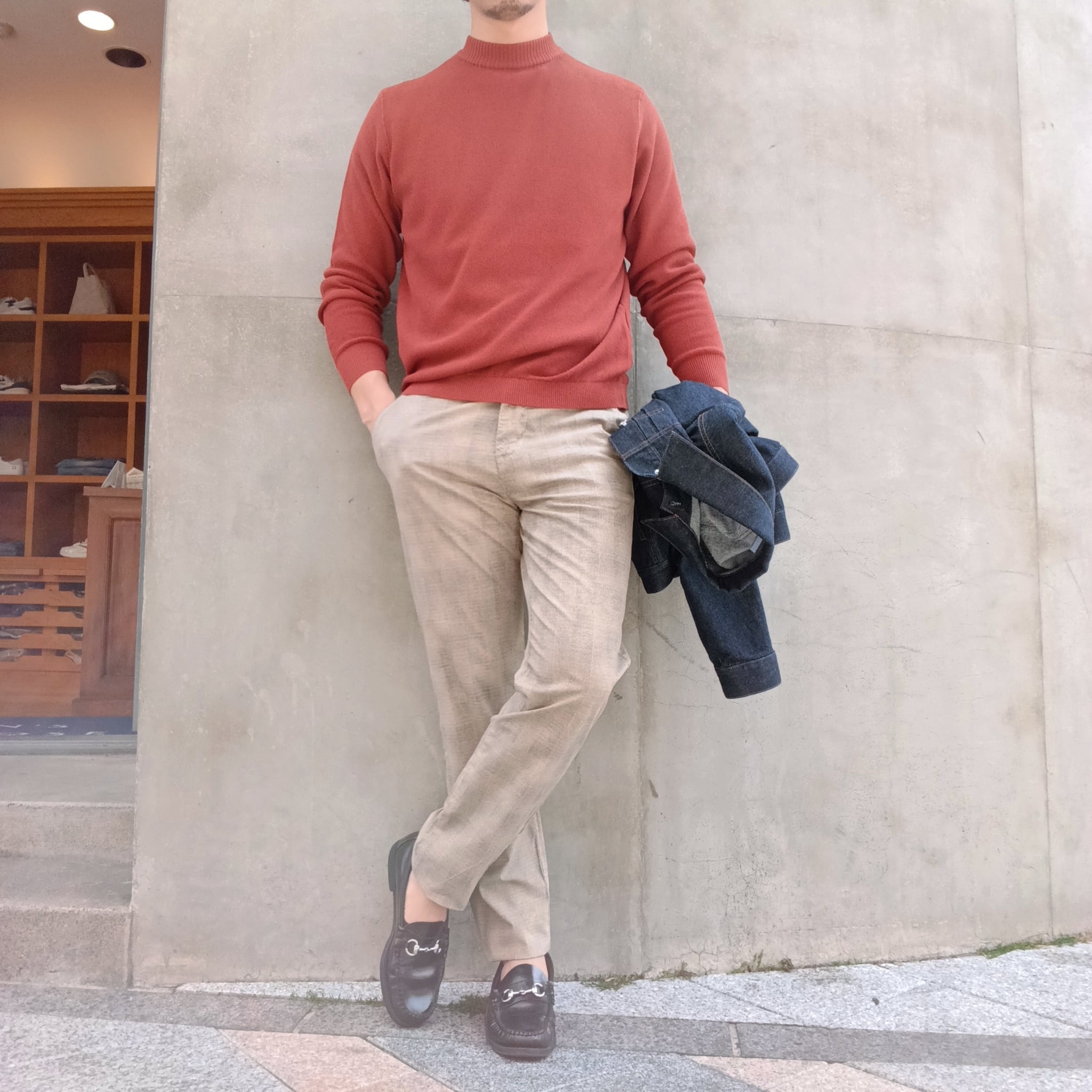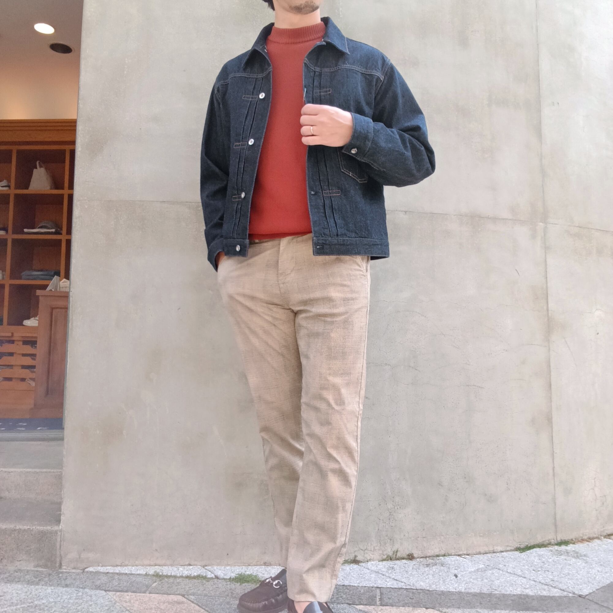 身幅には程よくゆとりを持たせていますが、アウターを羽織っても中でもたつかない絶妙な具合です。