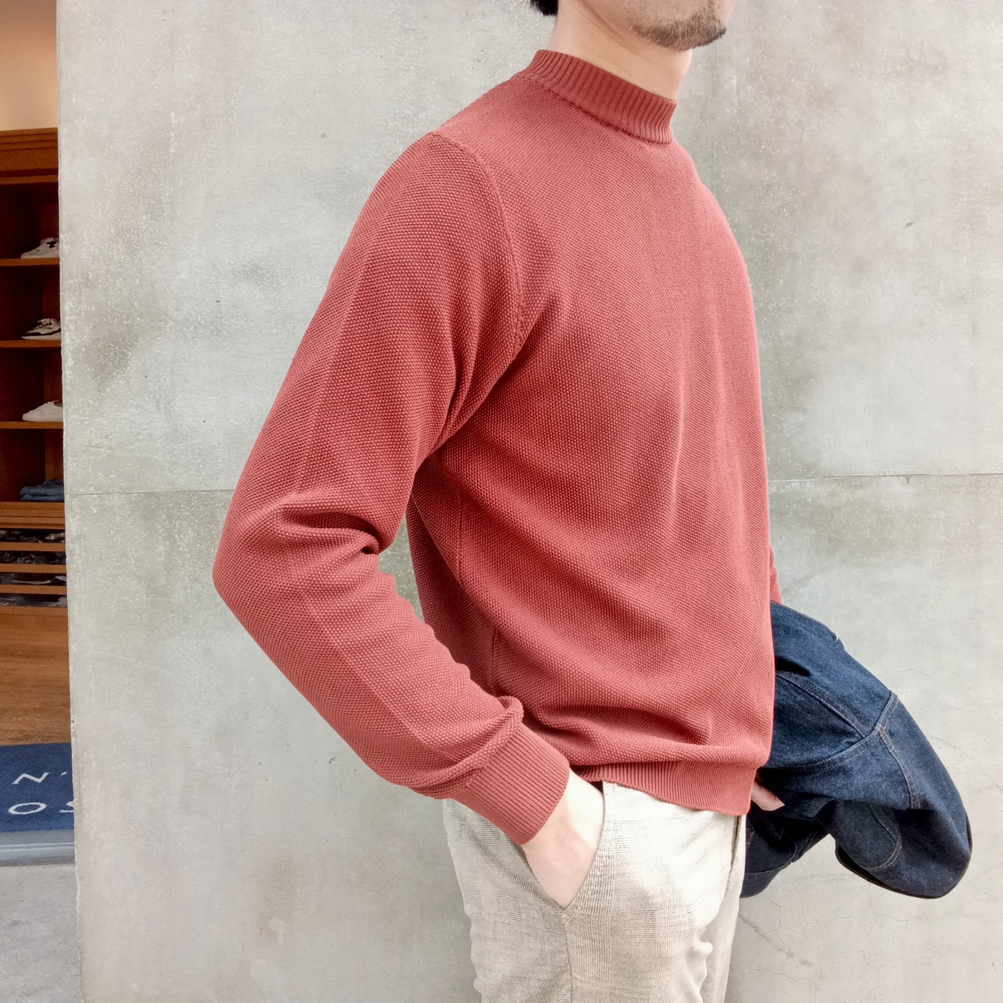<期間限定展開>Rinacente(リナシェンテ)鹿の子編みモックネックニット / ブリック