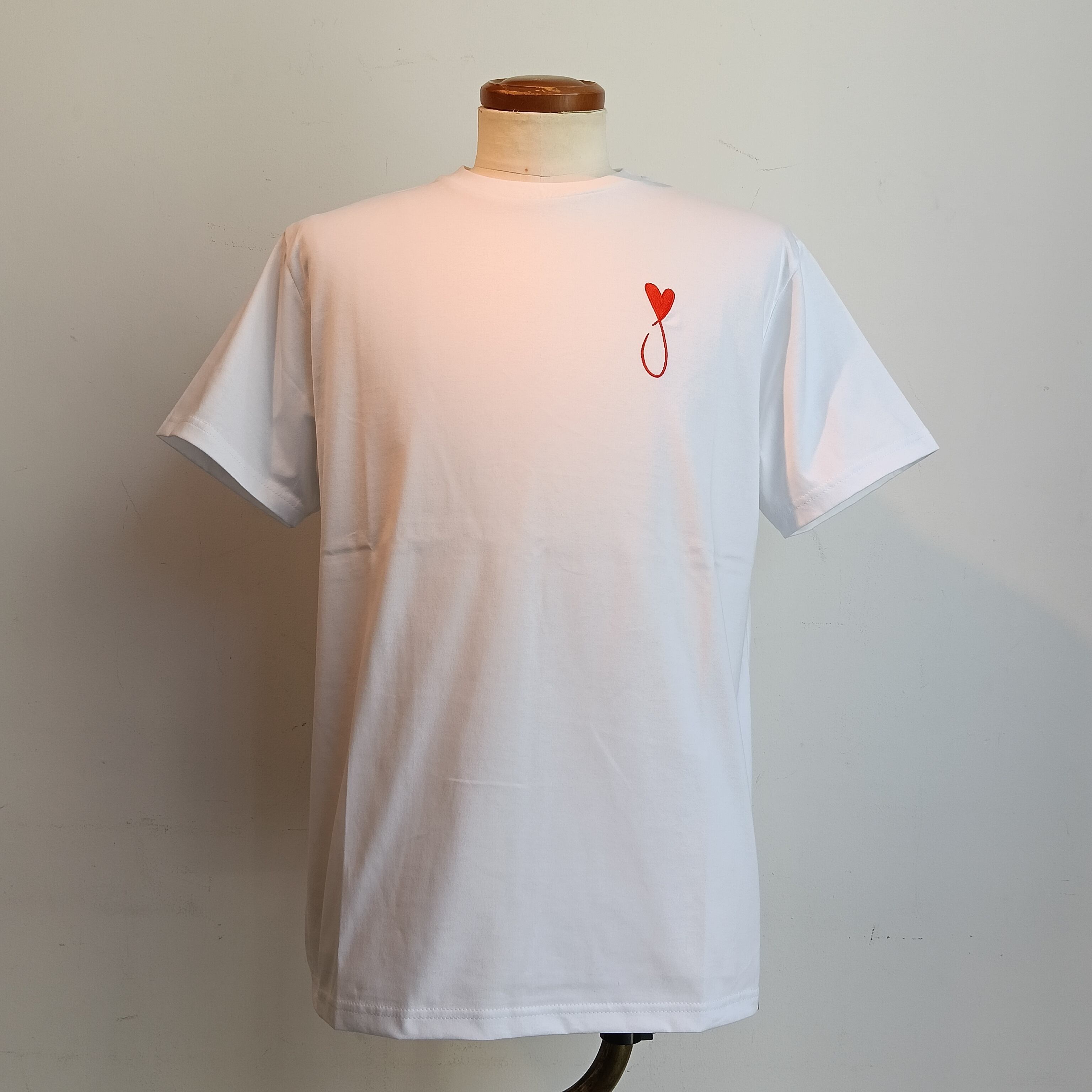 Maison Honoreのシンボル的マークの「ハートフィッシュ」とよばれるブランドアイコンを刺繍であしらったTシャツ。着心地の良い上質なコットン素材を使用。