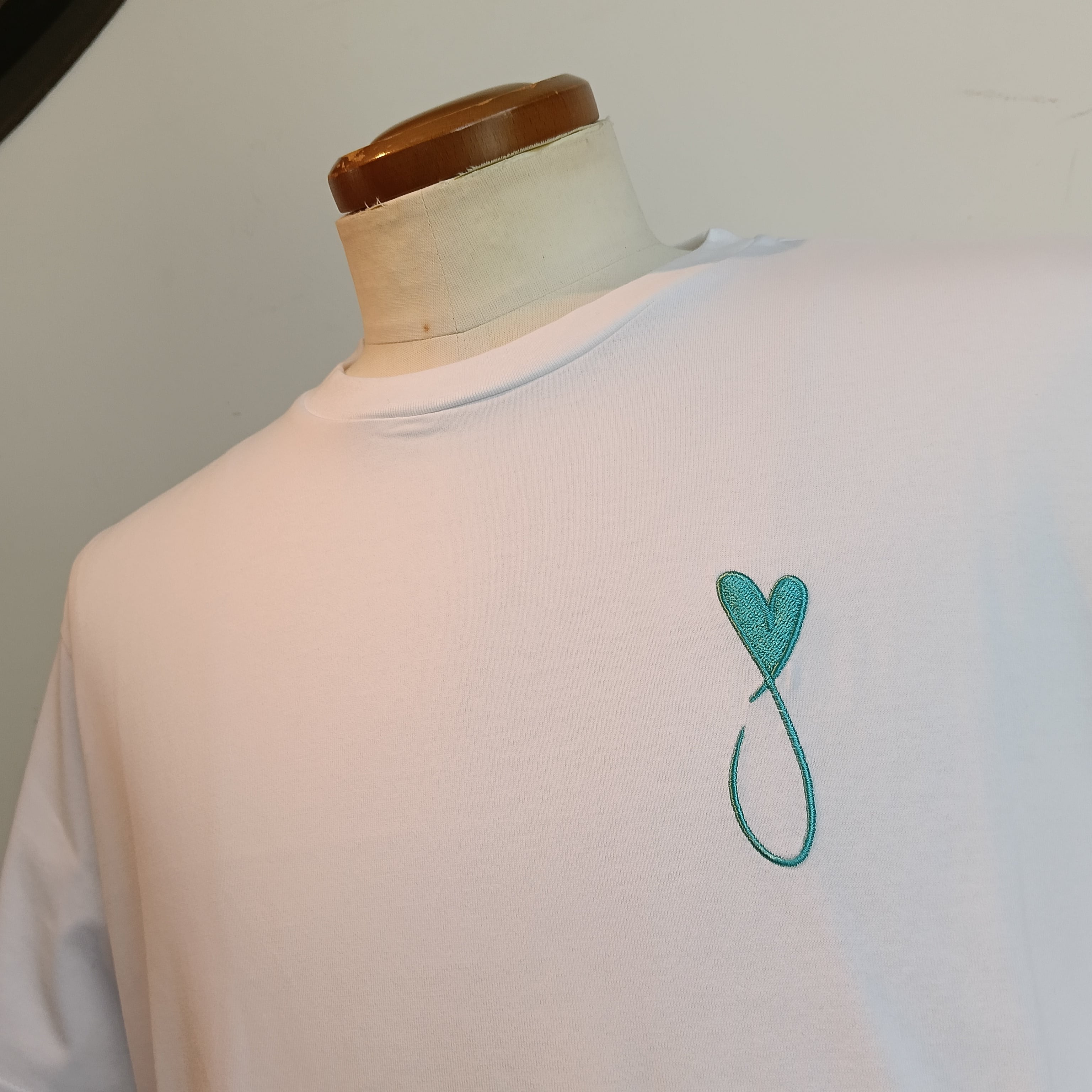 Maison Honoreのシンボル的マークの「ハートフィッシュ」とよばれるブランドアイコンを刺繍であしらったTシャツ。着心地の良い上質なコットン素材を使用。