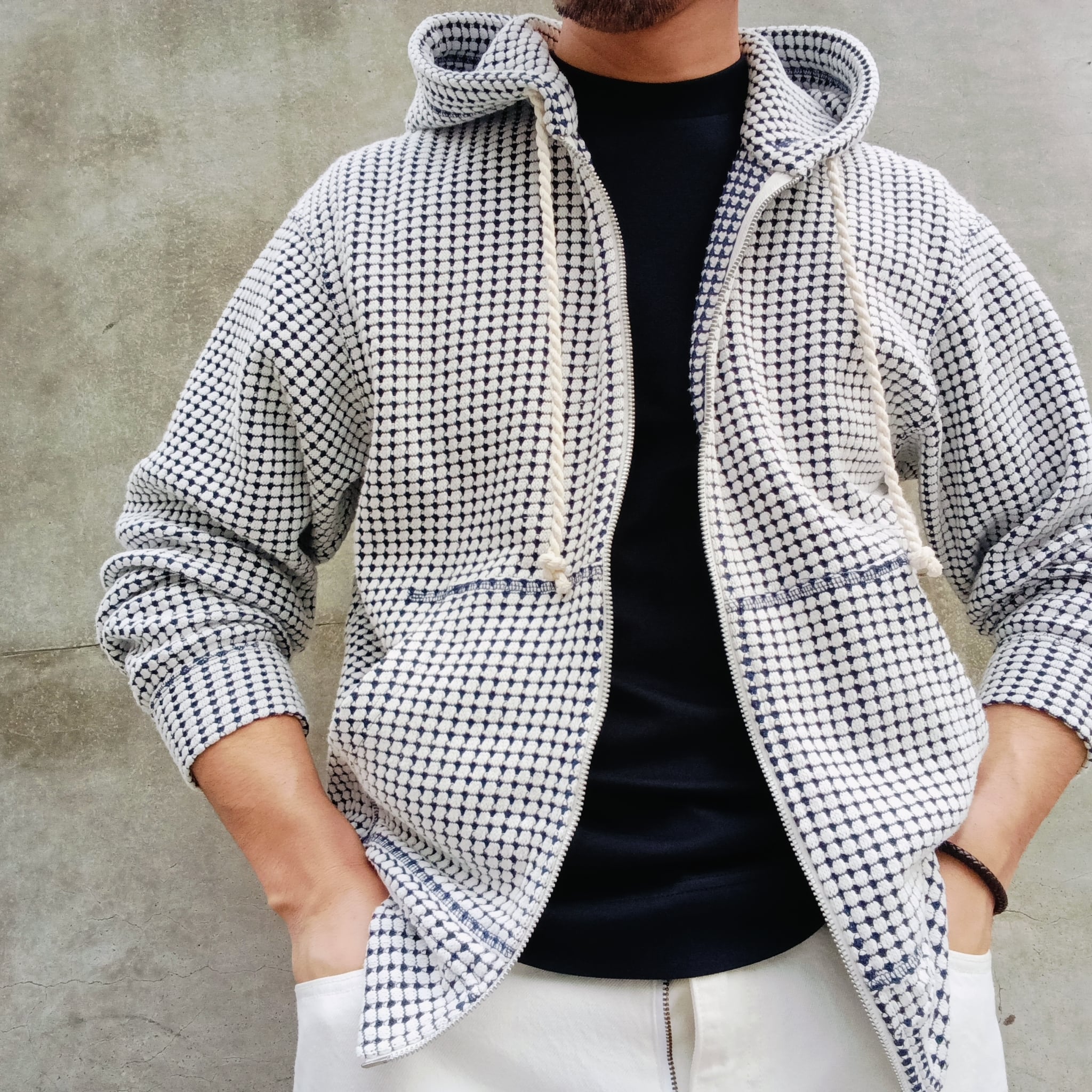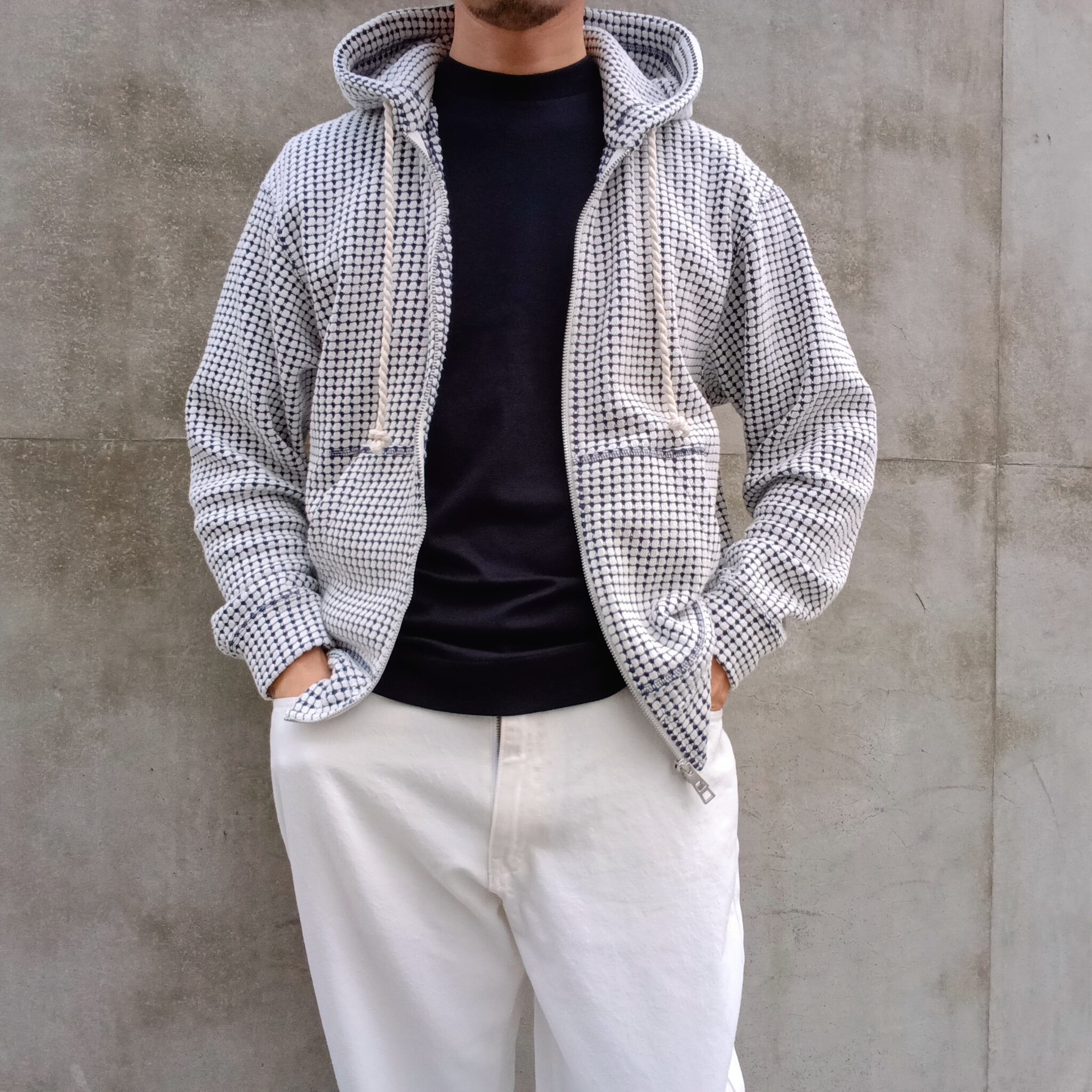 毎シーズン高い人気を誇るワッフル素材のフーディ。国内でも希少な編み機で独特の凹凸感を持たせたボディは、肌離れがよくてソフトなタッチがカラダに心地よくフィット。従来のタイトな形からリラックスフィットにアップデイトされたシルエットも魅力。