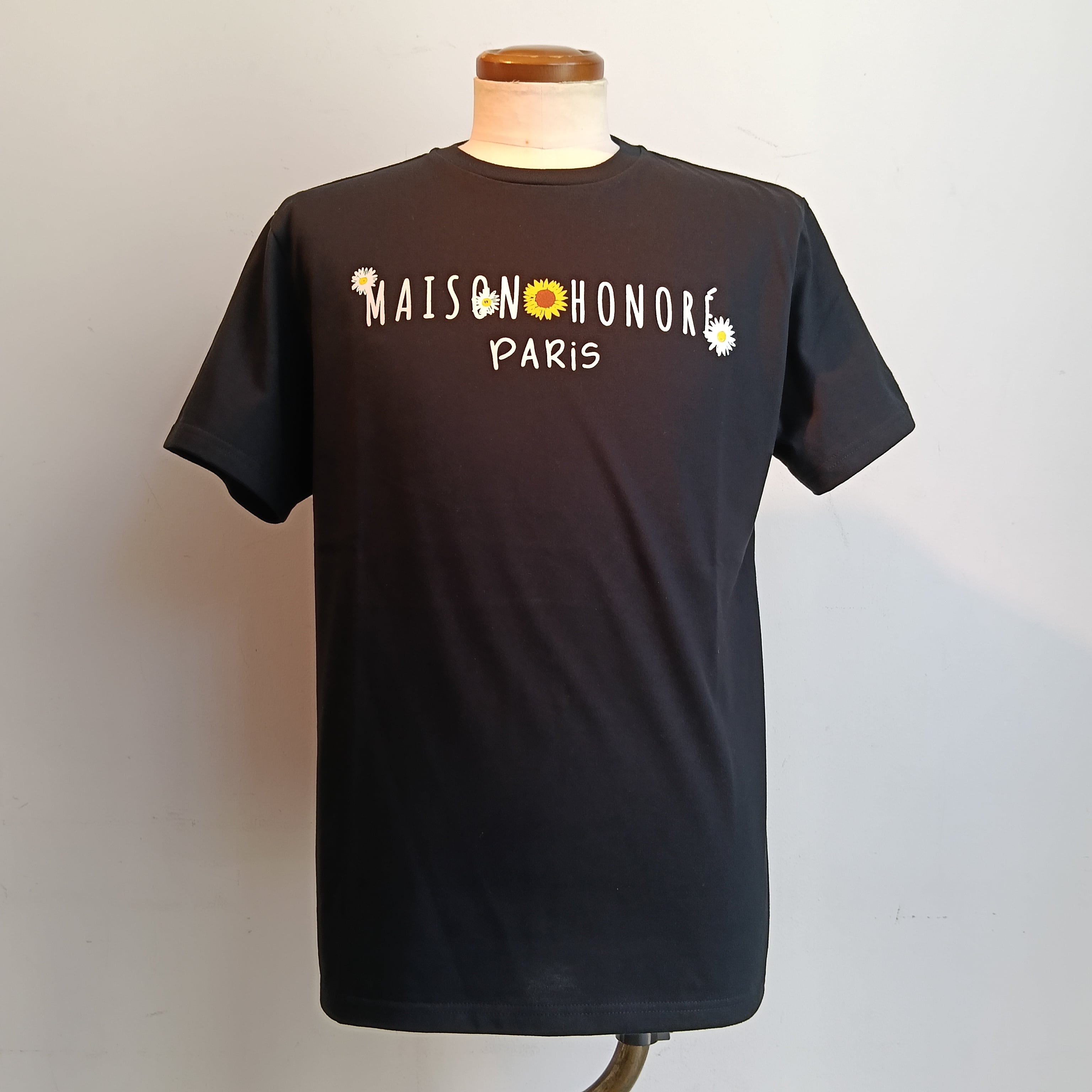 MAISON HONORE(メゾンオノレ) Azelie (ひまわり&ロゴ) Tシャツ / ブラック
