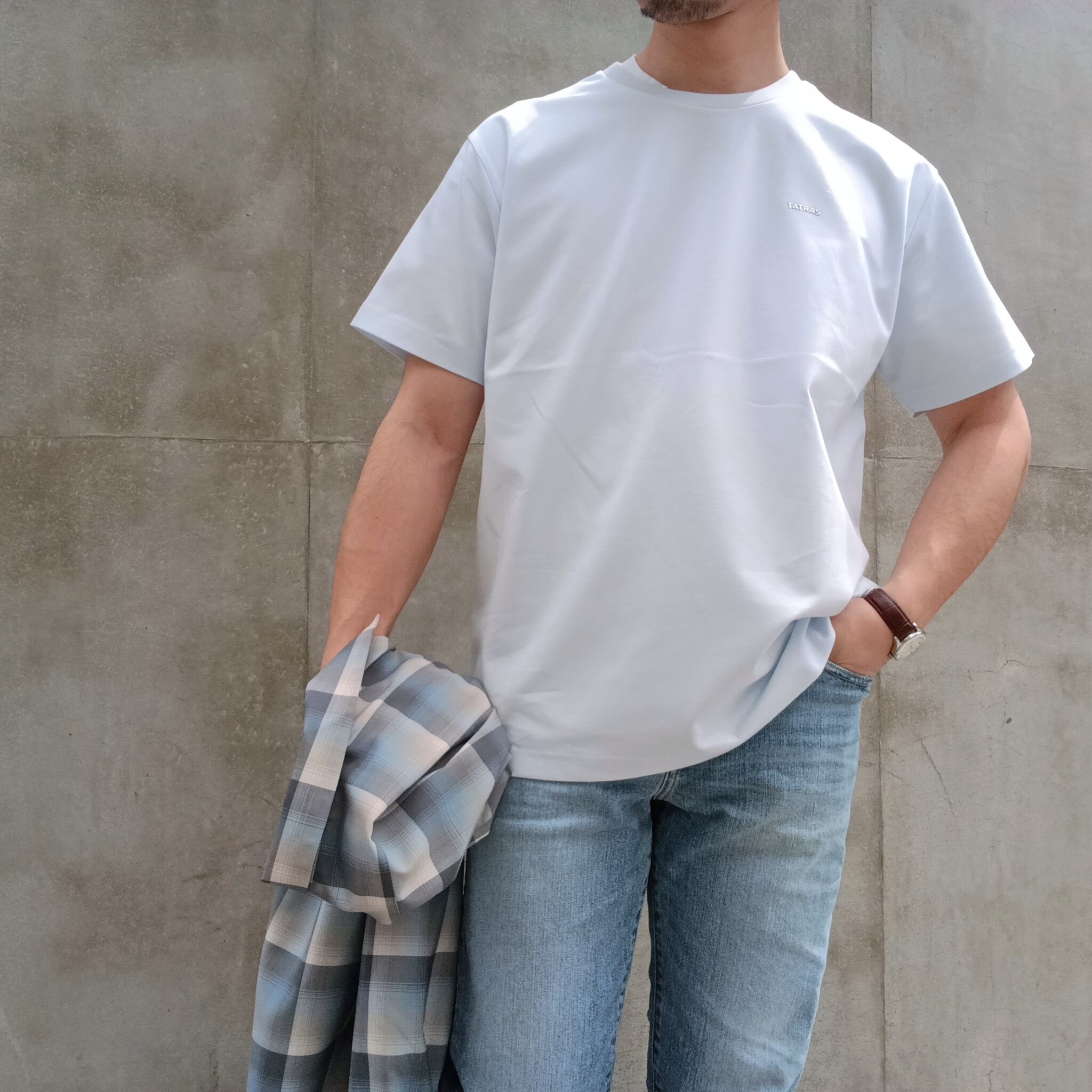 胸元に配したTATRASロゴはシルバーにして、さりげなくもエッジを加えています。