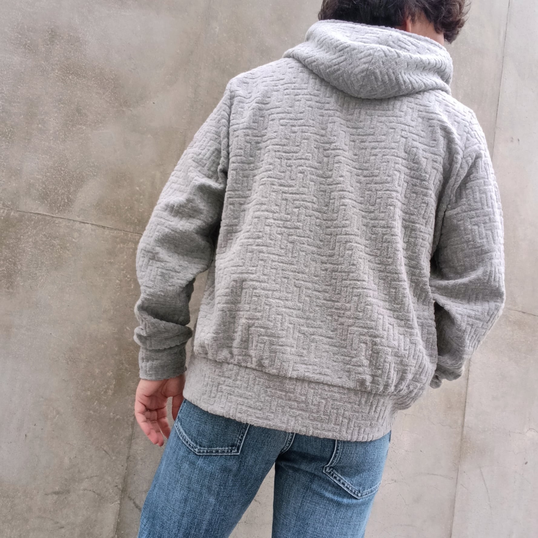 ドロスト式のフードで、首回りを絞ることも可能です。