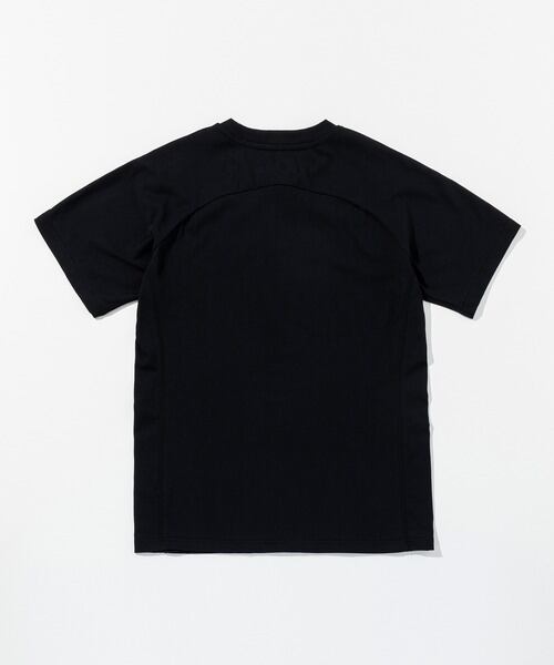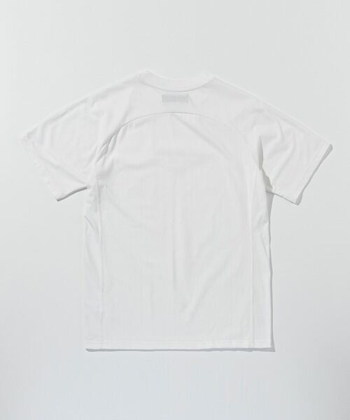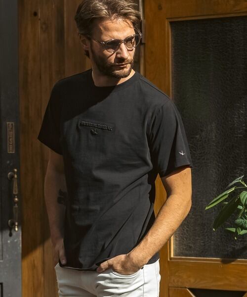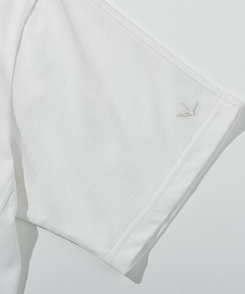 胸元にブランドロゴをエンボスで配置した半袖Tシャツ。