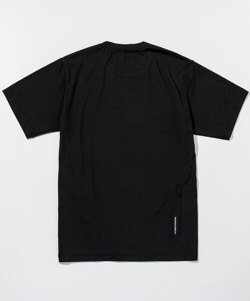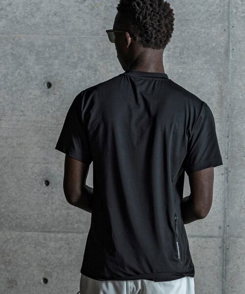 背面に配置したファスナーポケットがシャープな表情の半袖カットソー。