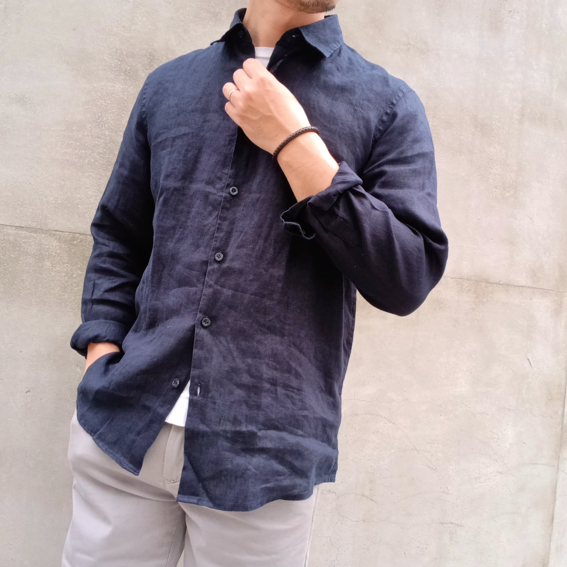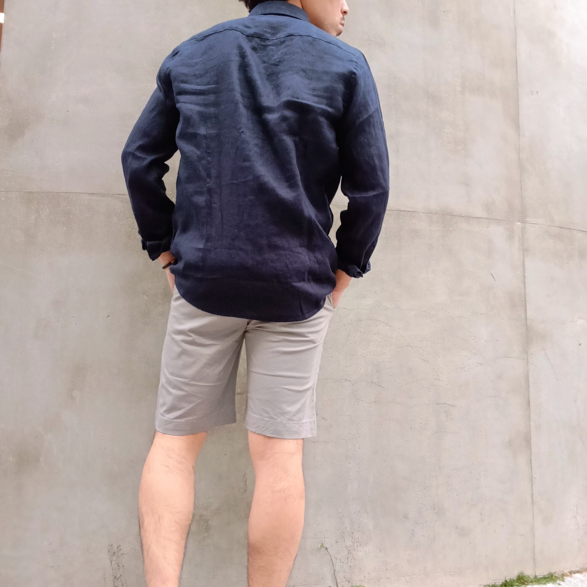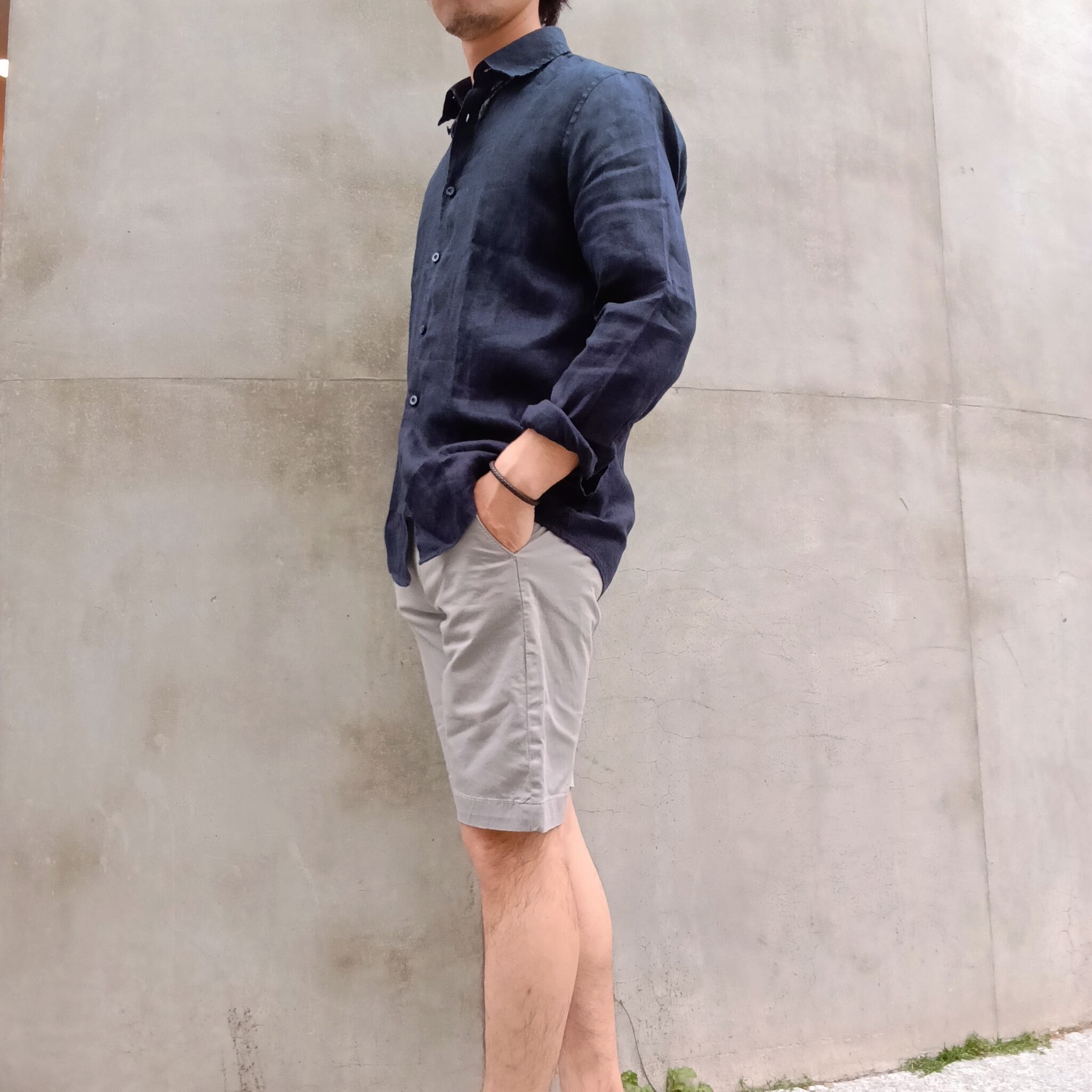 リネン100%、レギュラーカラーのロングスリーブシャツ。ジャケットやショーツなどのアイテムとも相性のよい夏のシーズンに欠かせないアイテム。リネンならではの透け感やシワ感を楽しむ、大人のおしゃれコーデにオススメです。シルエットは程よくウエスト部分がシェイプされてとてもスタイリッシュ。