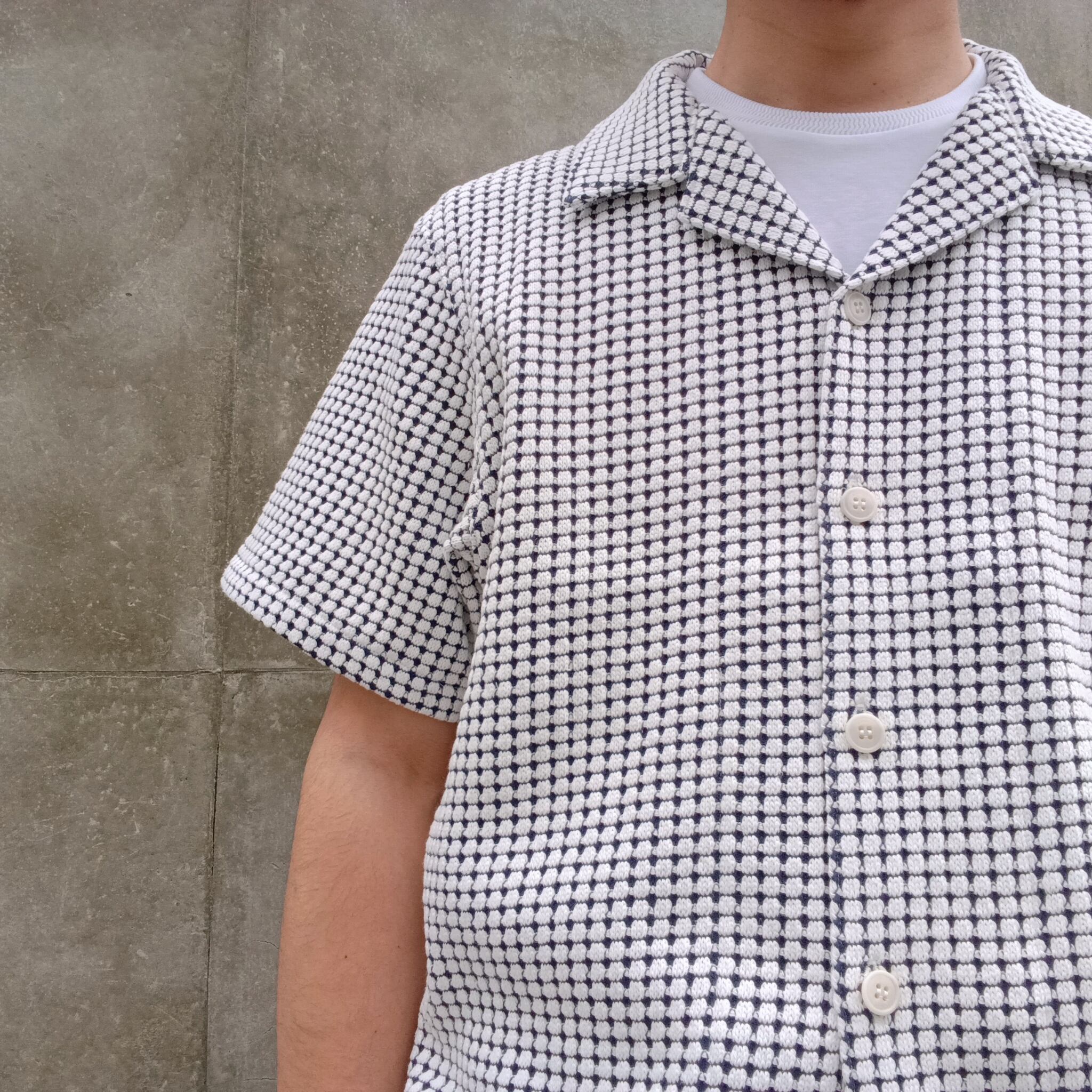 ゆったりとしたシルエットでリラックス感のあるオープンカラーシャツ