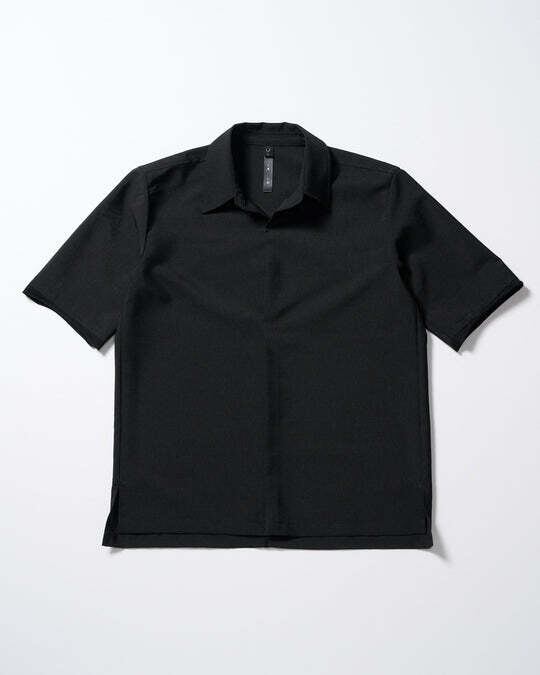 繊細な凹凸によるナチュラルな表情かつ肌離れの良いブッチャー生地を採用。高機能素材「セオアルファ®」を使用しており、吸水速乾に優れ軽量でシワになりにくいため快適に着用でき、かつ上品な風合いをキープしてくれる。