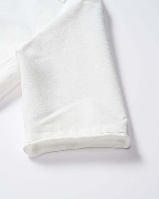袖口と背接ぎに天竺ロールを施し、wjkらしいデザインアクセントを加えている。サイドに深めのスリットを入れることで機能面も考慮。