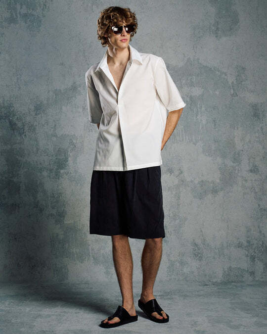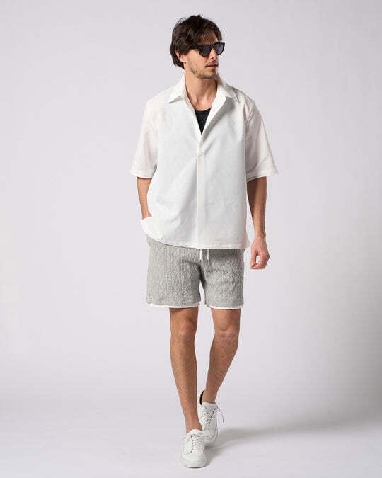 広い前開きとゆったりとした身幅によりリラックスした印象を与えるプルオーバーシャツ。