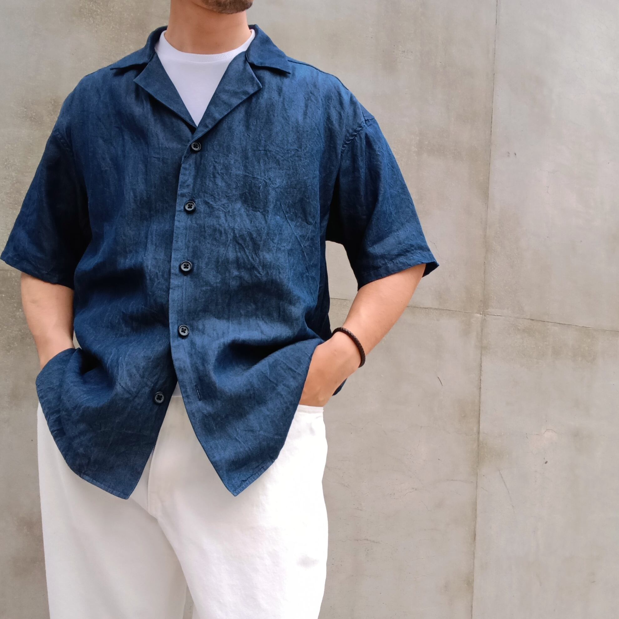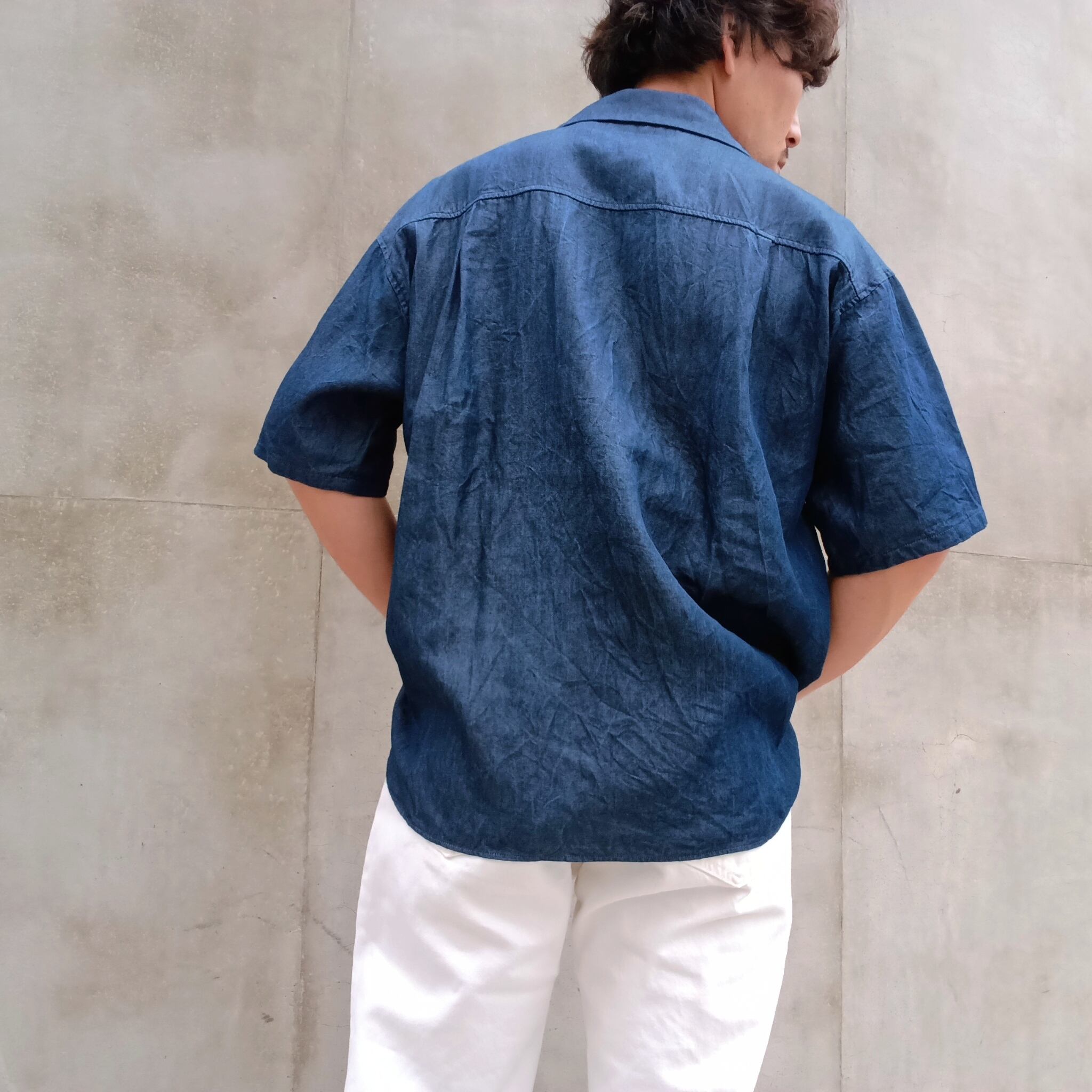 SALUTE HELM(サルートヘルム) テンセルTMリヨセル繊維インディゴデニム半袖シャツ/ ダークインディゴ(バイオウォッシュ)