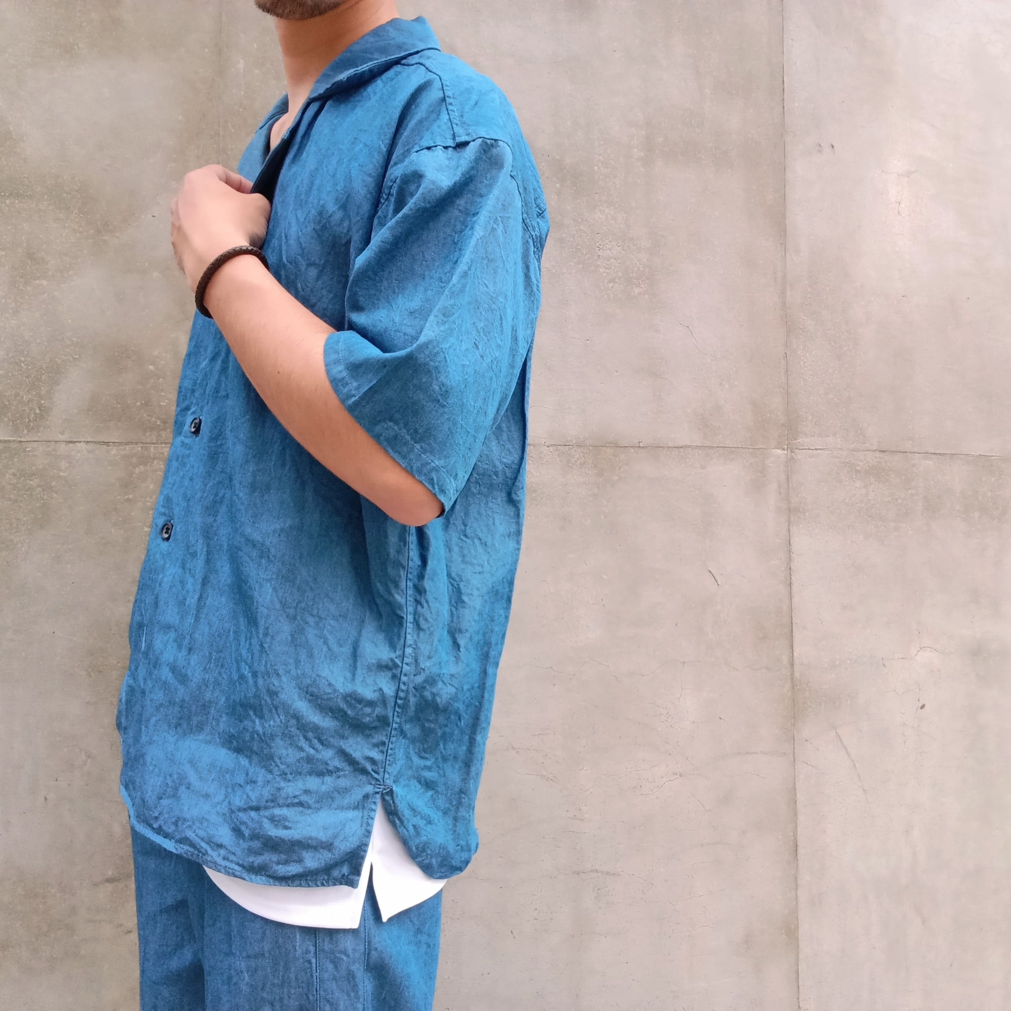SALUTE HELM(サルートヘルム) テンセルTMリヨセル繊維インディゴデニム半袖シャツ/ ダークインディゴ(ブリーチ)
