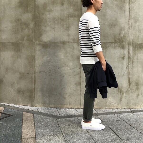 G.F.G.S.(ジーエフジーエス) boat-neck 7分/ naval(ナバル) /ホワイト×ネイビー