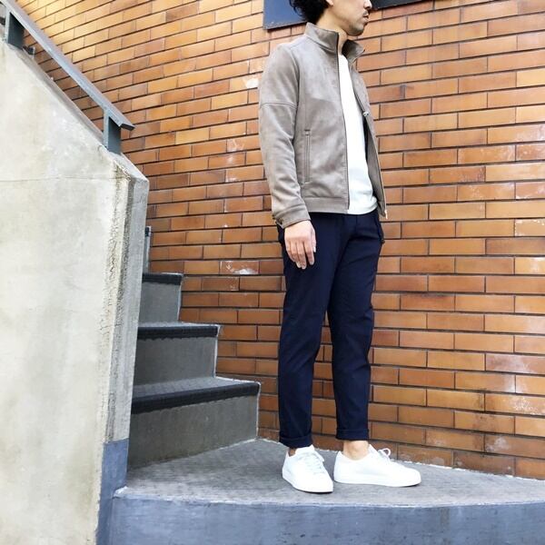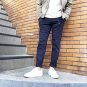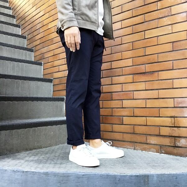 レザーのシューズとはもちろん、スニーカーを合わせると旬のカジュアルスタイルが完成します。こちらは、当ブランドのアイテムの中でまずはじめに手に入れていただきたい、軽い素材感が特徴のパンツ。