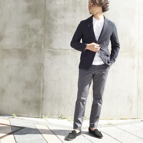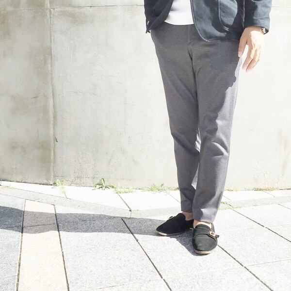 ・膝抜けしづらく、仕立て栄えのする生地感が特徴。