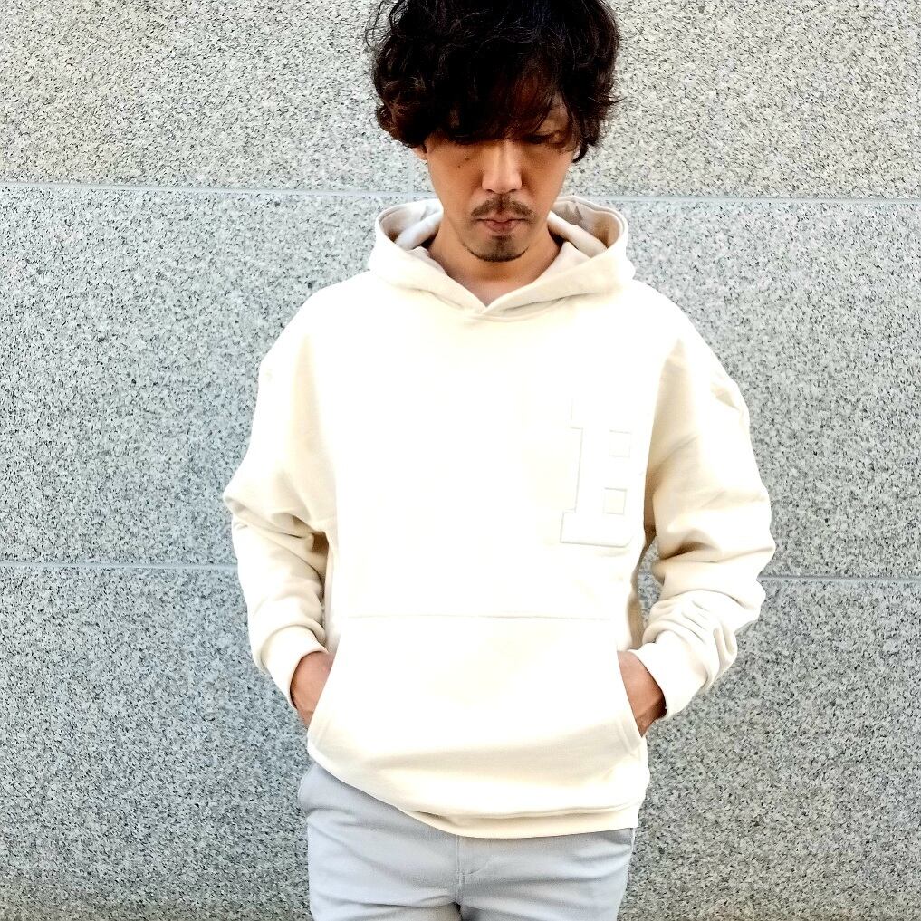 I’M BRAIN レザーパッチオーバーサイズプルオーバーパーカー