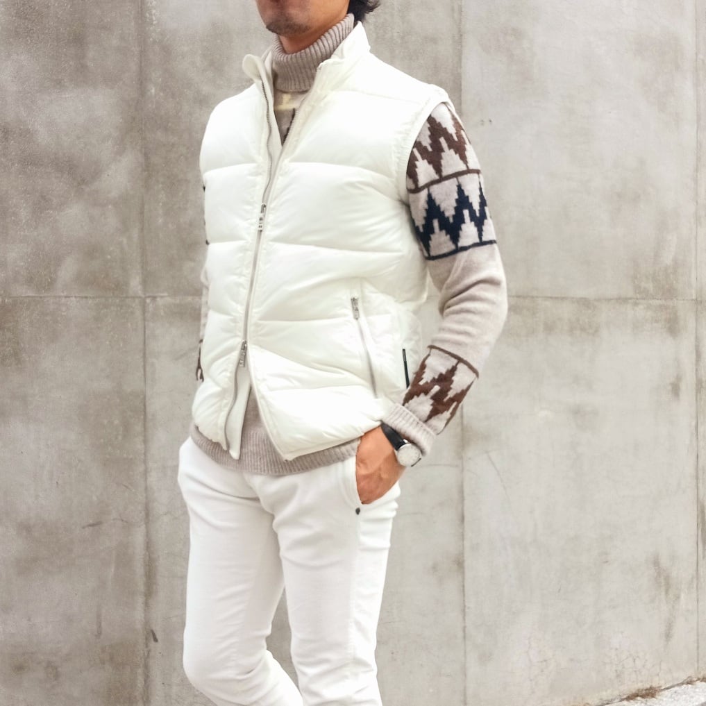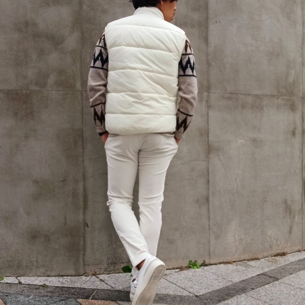 軽量でサッと羽織れるうえに、防寒対策にも優れた中綿ベストが登場。同色でまとめられたデザインなので、様々なスタイリングに気軽に羽織っていただけます。インナーはスッキリとしたカットソーはもちろん、ニットもおすすめ。リブパンツのようなスポーティな表情のアイテムとも合わせやすい一着です。