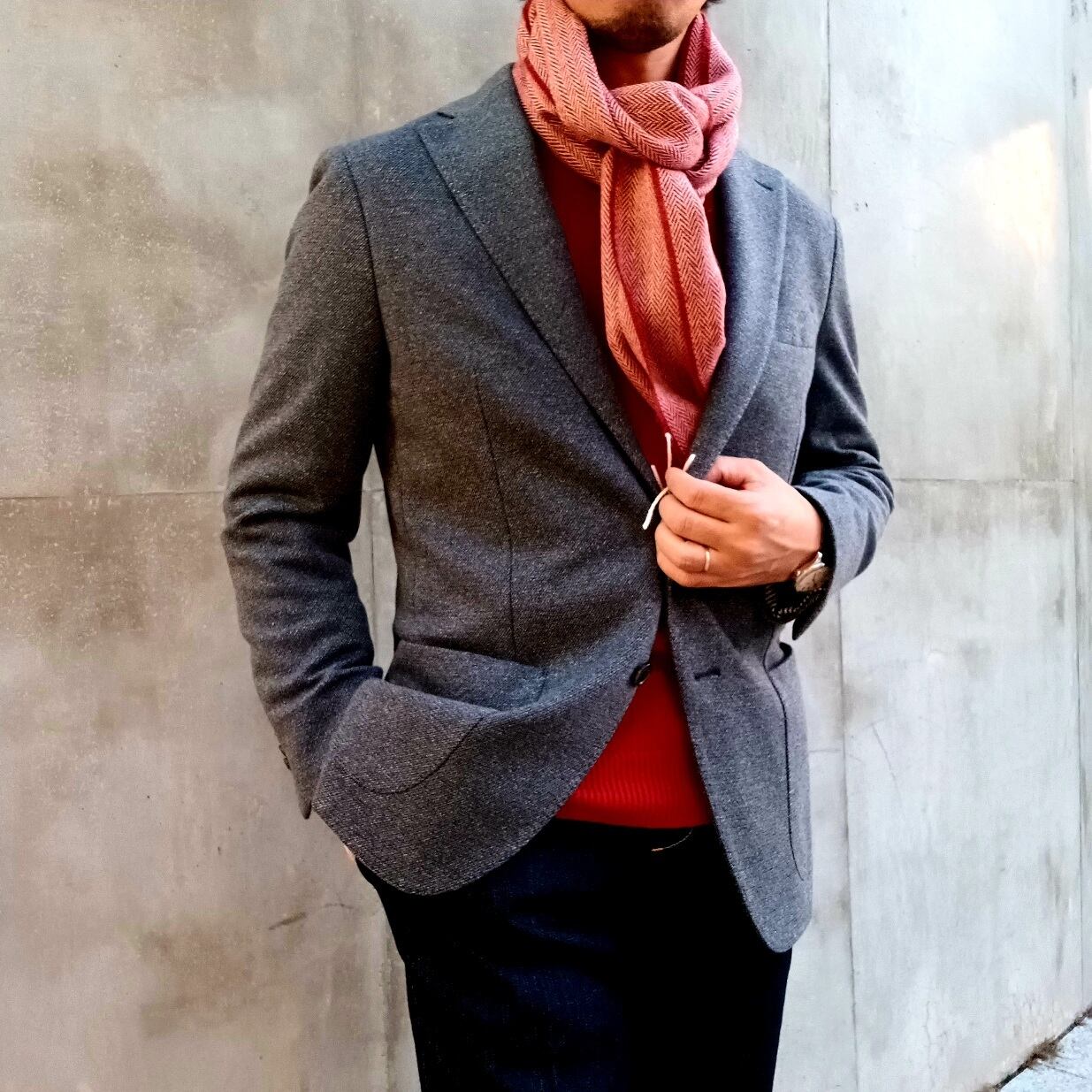 生地はフワッと空気をまとうような感触の「スーパーソフトラムウール」を使用。生後5~7ヶ月前後までのメリノ種の仔羊から刈り取られる羊毛で、ウールよりもさらに繊維が細いのが特徴。軽くふんわりとしていてチクチクする感じもあまりありません。まるで身につけていることを忘れるかのような優しい巻き心地。そして空気を沢山含み抜群の保温性があります。柄のヘリンボーンはツイード生地のデザインとして多く見られるイギリス発祥の柄。クラシカルで落ち着いた雰囲気です。性別年齢問わず、カジュアルな装いからフォーマルスーツまで、数枚揃えて気分やコーディネートで使い分けもできます。プレゼントにもおすすめです。